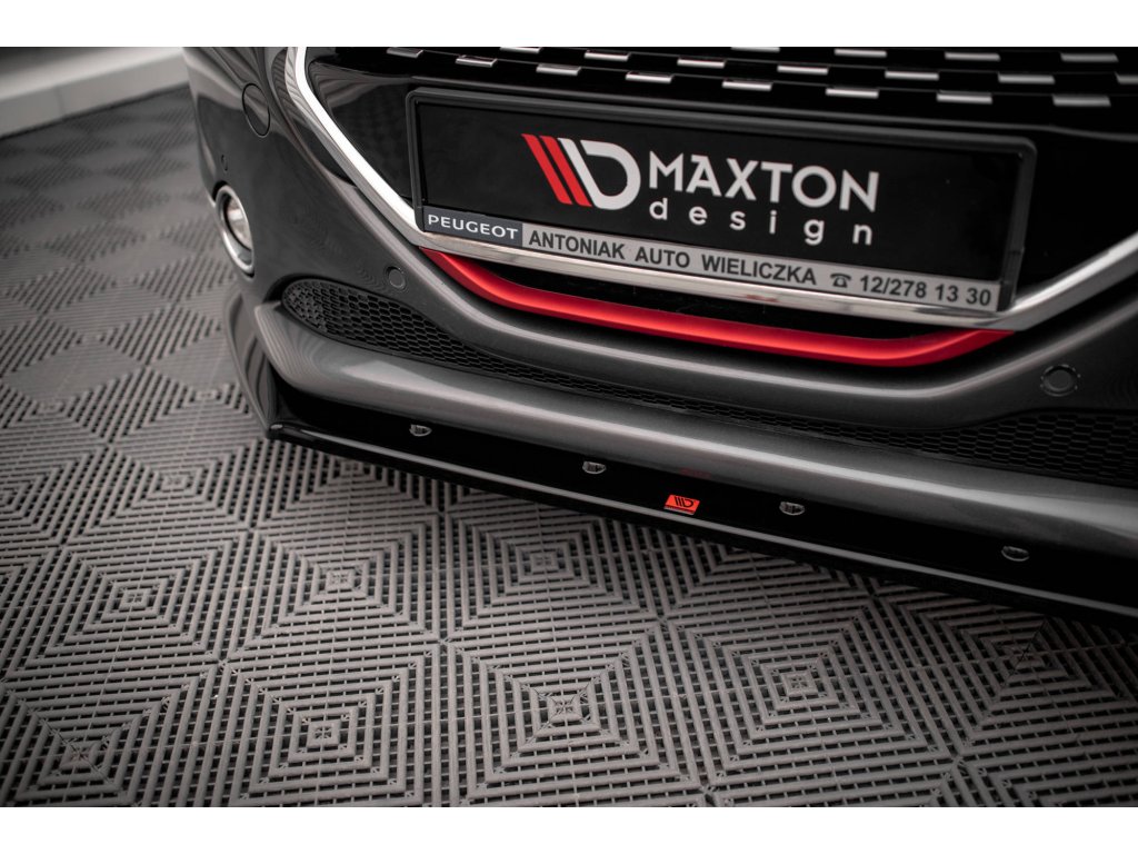 Maxton Design spoiler pod přední nárazník pro vozidlo Peugeot 208 GTI Mk1 . Povrchová úprava spoileru černý lesklý plast ABS.