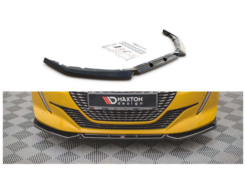 Maxton Design spoiler pod přední nárazník pro vozidlo Peugeot 208 Mk2 . Povrchová úprava spoileru carbon-Look.