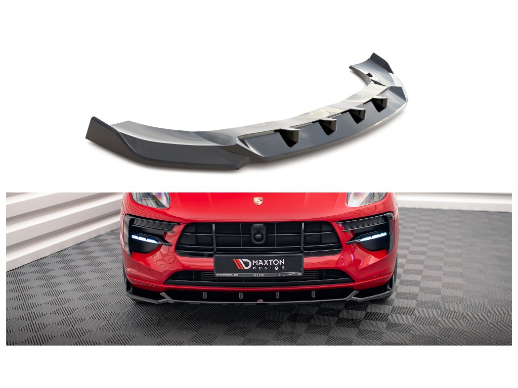 Maxton Design spoiler pod přední nárazník pro vozidlo Porsche Macan Mk1 Facelift . Povrchová úprava spoileru carbon-Look.