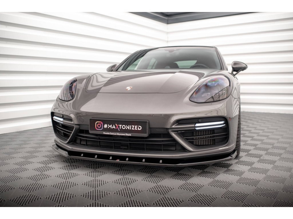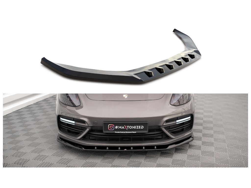 Maxton Design spoiler pod přední nárazník pro vozidlo Porsche Panamera 971 E-Hybrid . Povrchová úprava spoileru carbon-Look.
