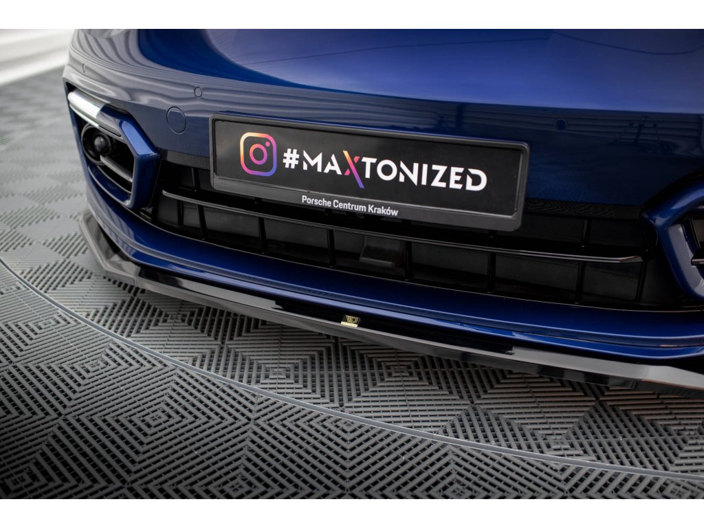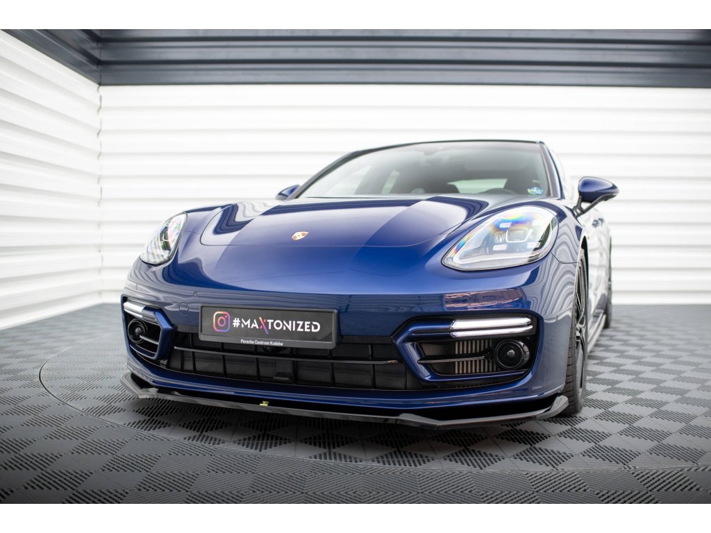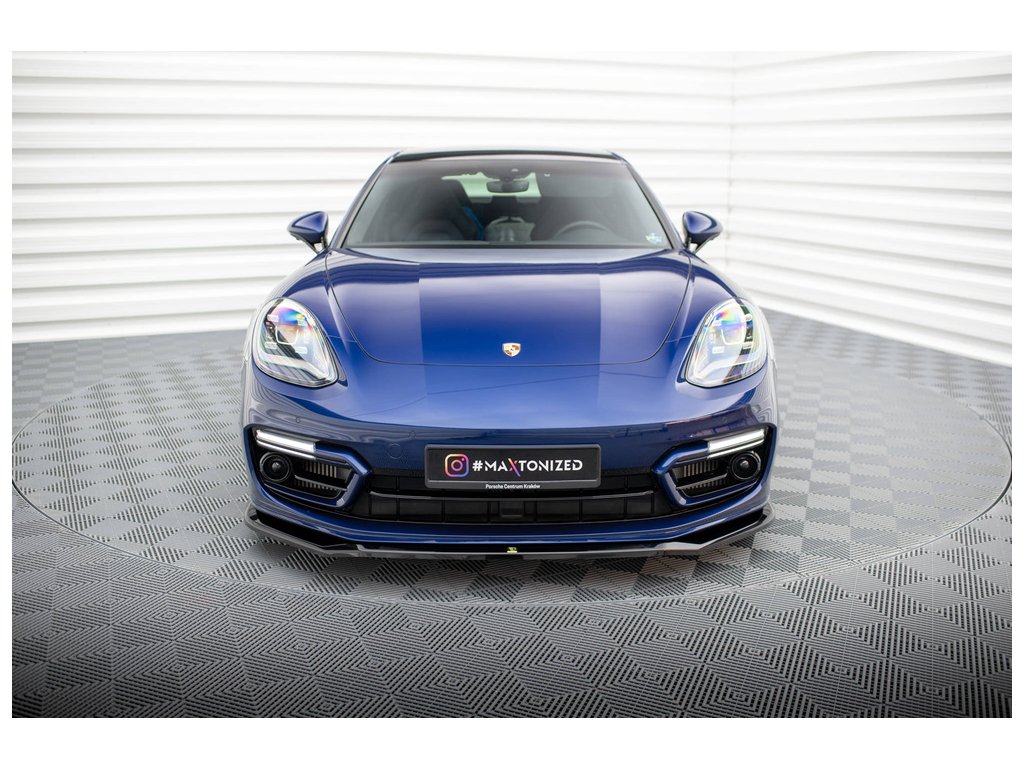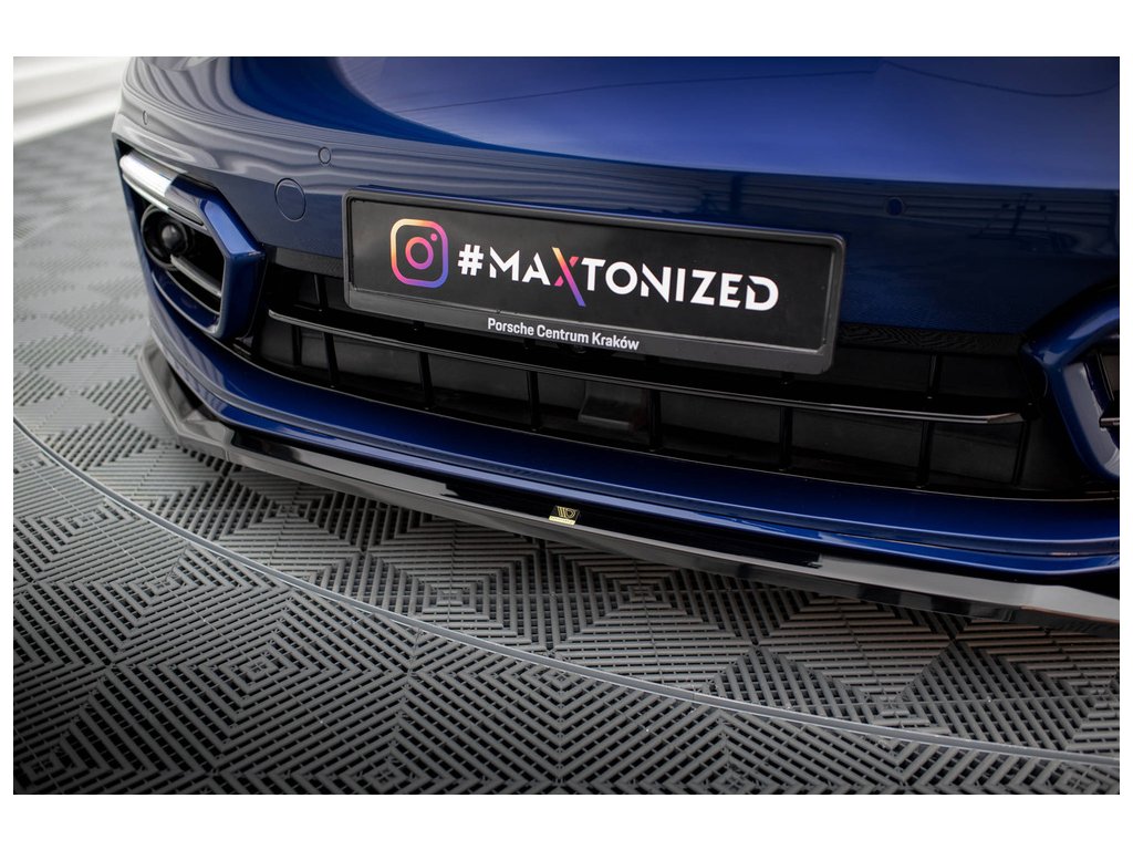 Maxton Design spoiler pod přední nárazník pro vozidlo Porsche Panamera 971 Facelift E-Hybrid . Povrchová úprava spoileru černý lesklý plast ABS.