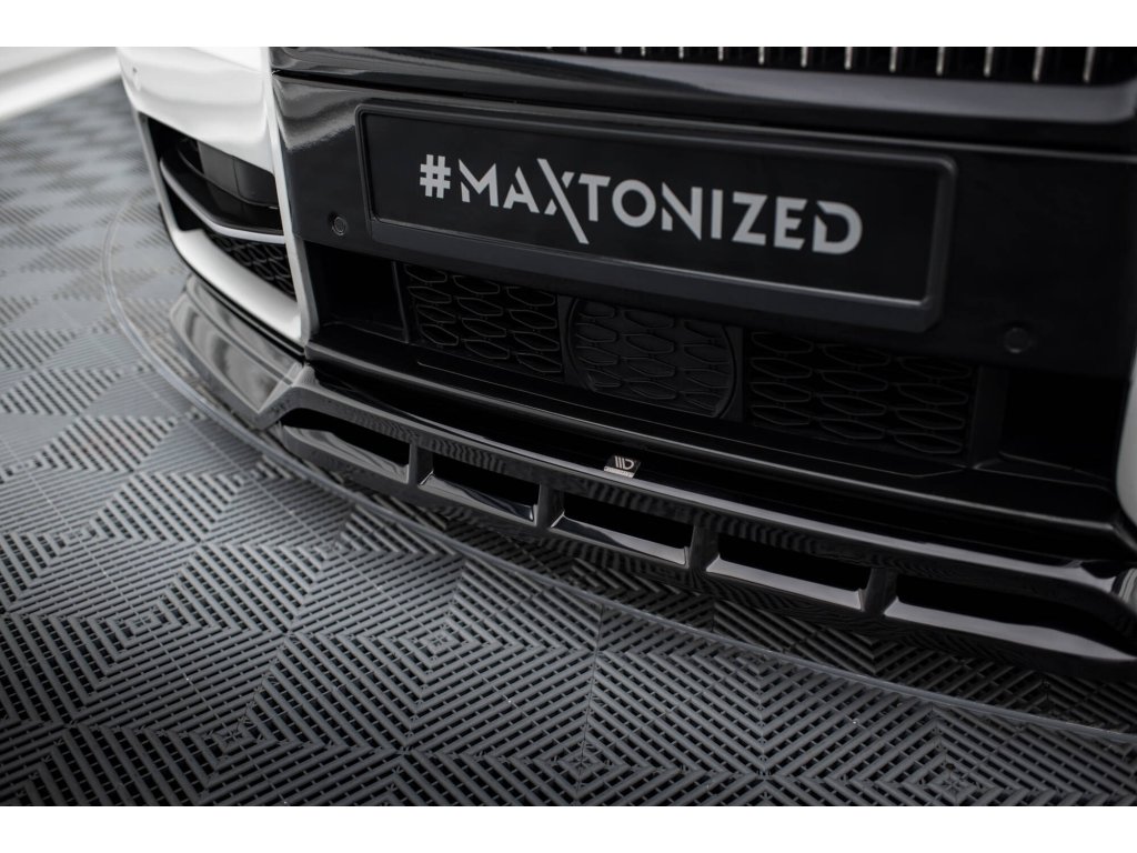 Maxton Design spoiler pod přední nárazník pro vozidlo Rolls Royce Cullinan . Povrchová úprava spoileru černý lesklý plast ABS.