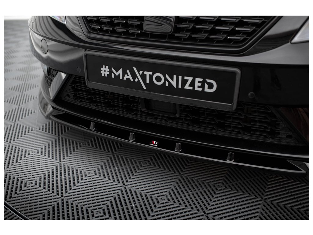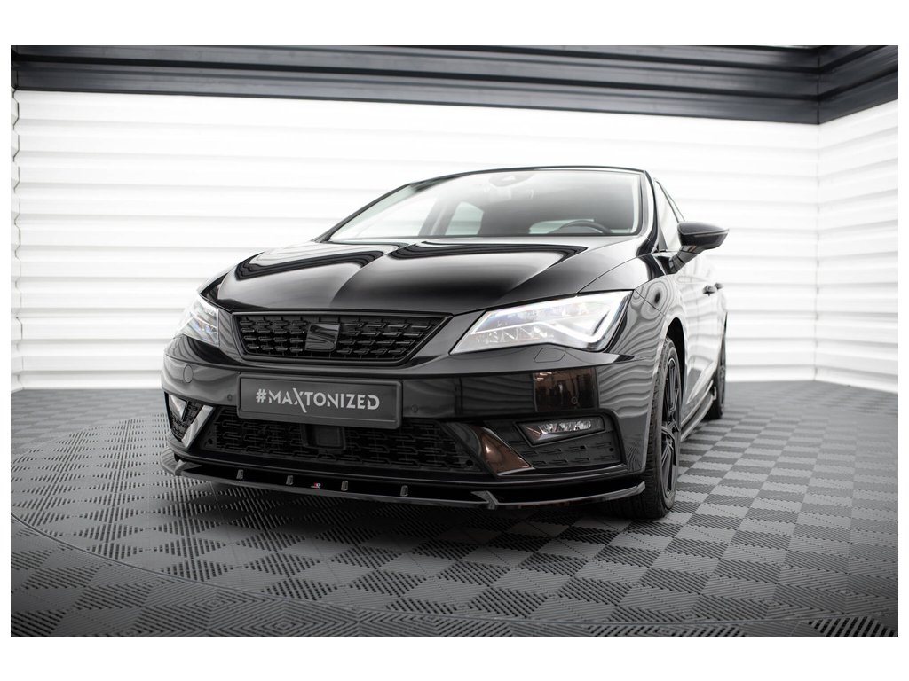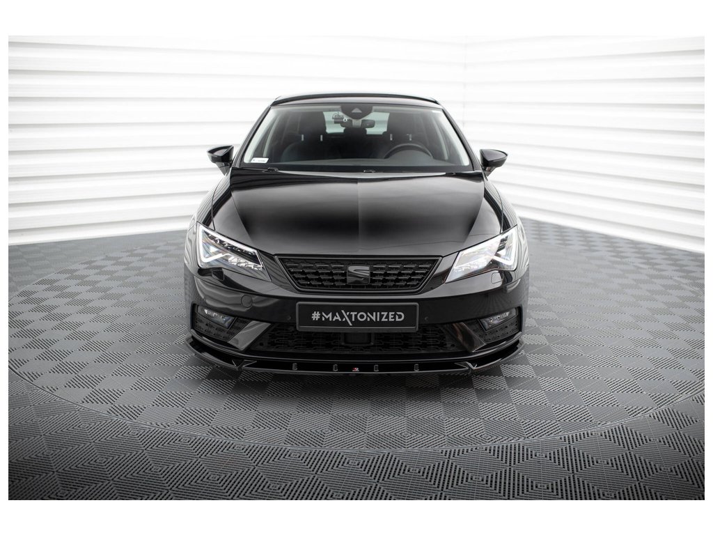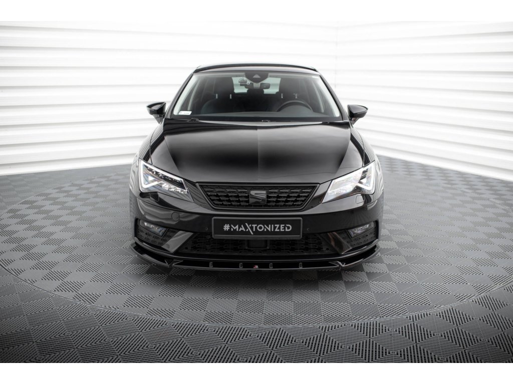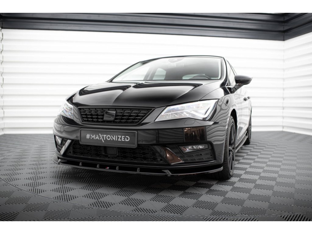 Maxton Design spoiler pod přední nárazník pro vozidlo Seat Leon Mk3 Facelift . Povrchová úprava spoileru černý lesklý plast ABS.