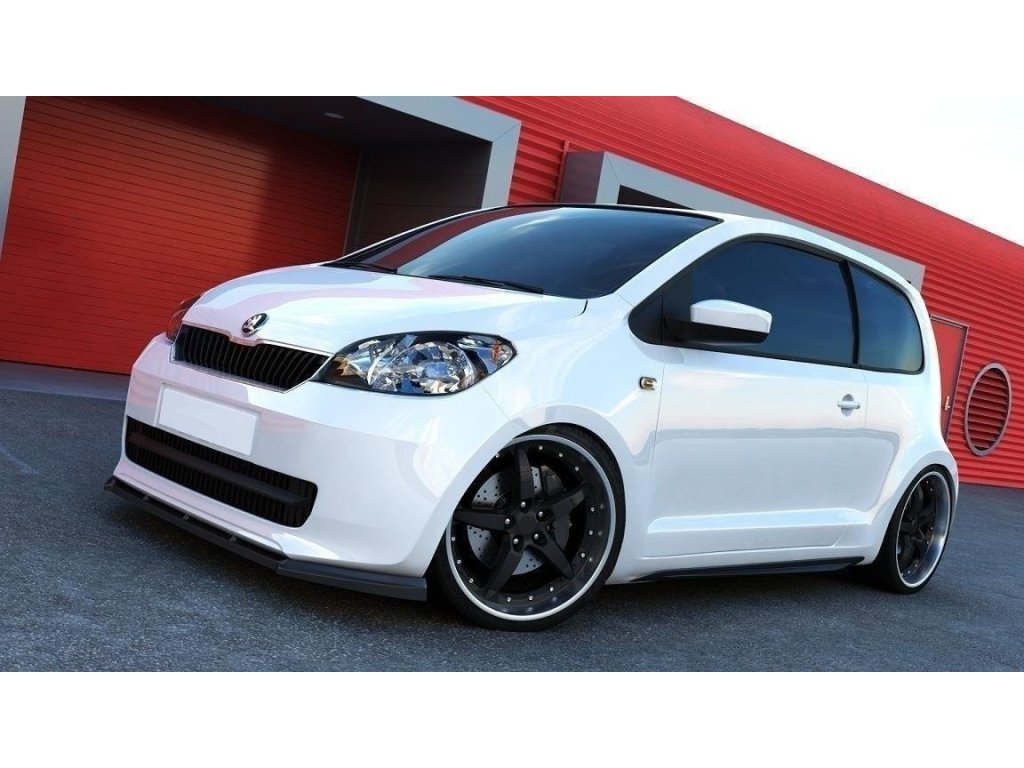 Maxton Design spoiler pod přední nárazník pro vozidlo Škoda Citigo . Povrchová úprava spoileru černý lesklý plast ABS.