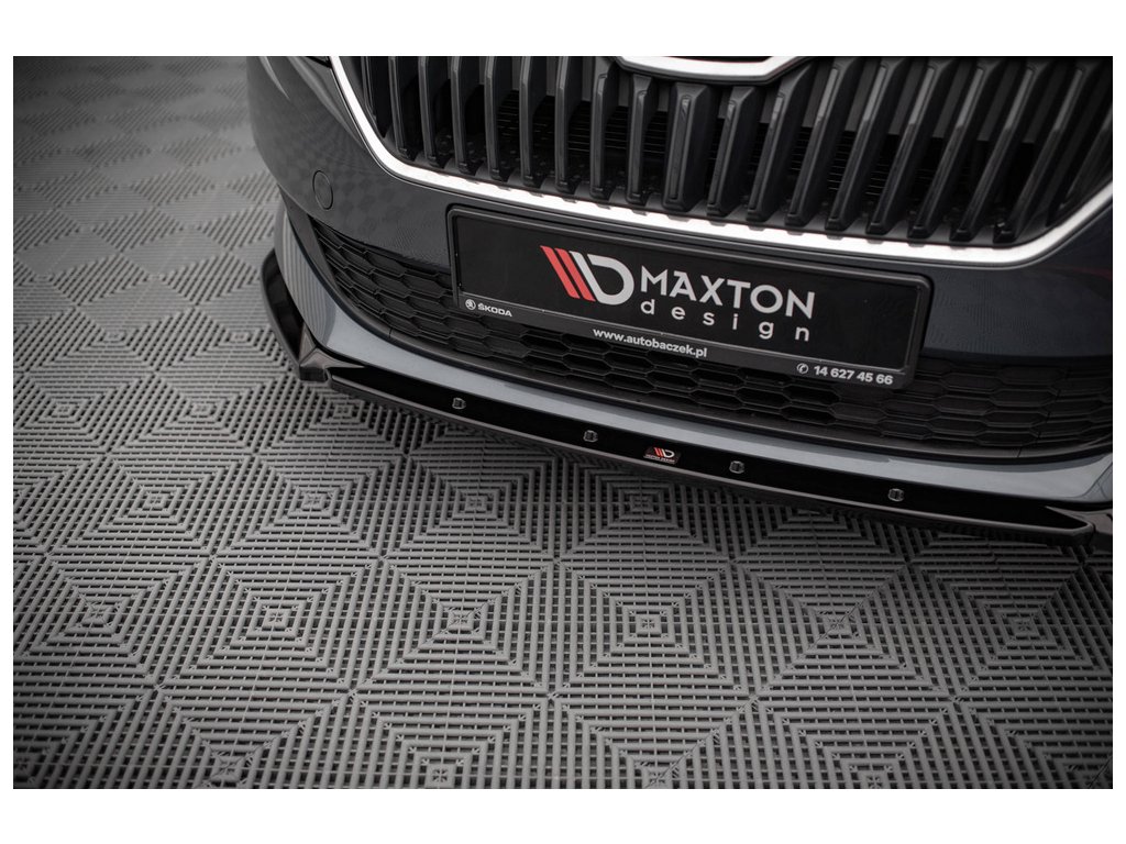 Maxton Design spoiler pod přední nárazník pro vozidlo Škoda Fabia MK3 Facelift . Povrchová úprava spoileru černý lesklý plast ABS.