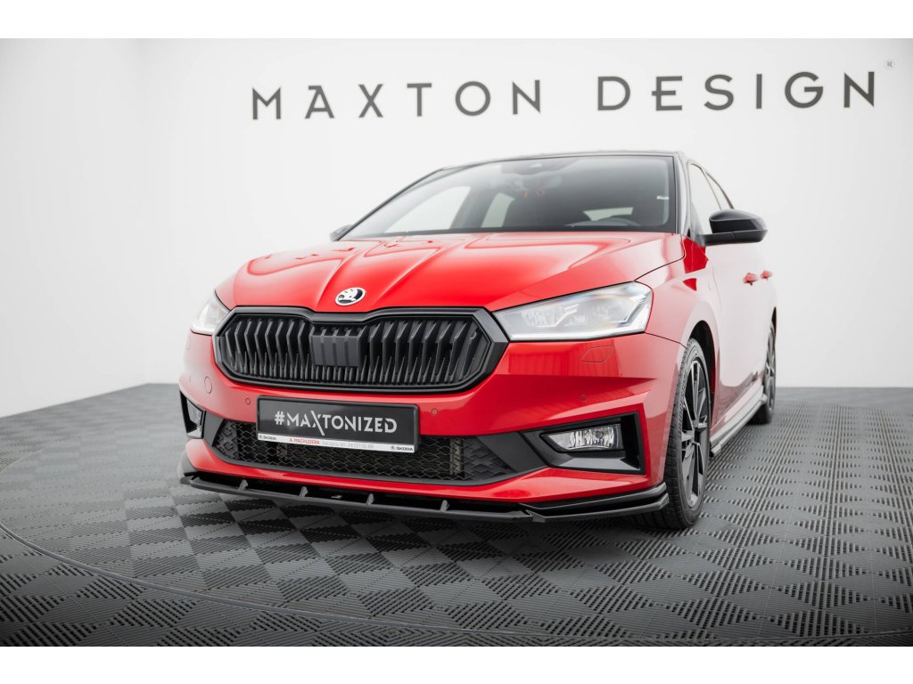 Maxton Design spoiler pod přední nárazník pro vozidlo Škoda Fabia Mk4 . Povrchová úprava spoileru černý lesklý plast ABS.