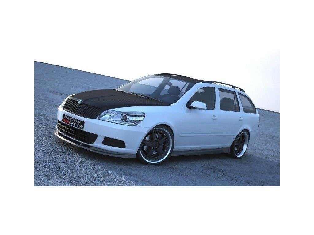 Maxton Design spoiler pod přední nárazník pro vozidlo Škoda Octavia Mk2 Facelift. Povrchová úprava spoileru carbon-Look.