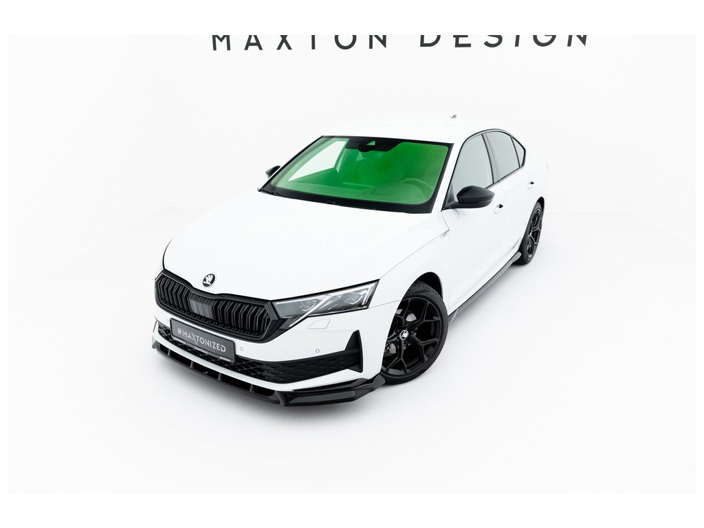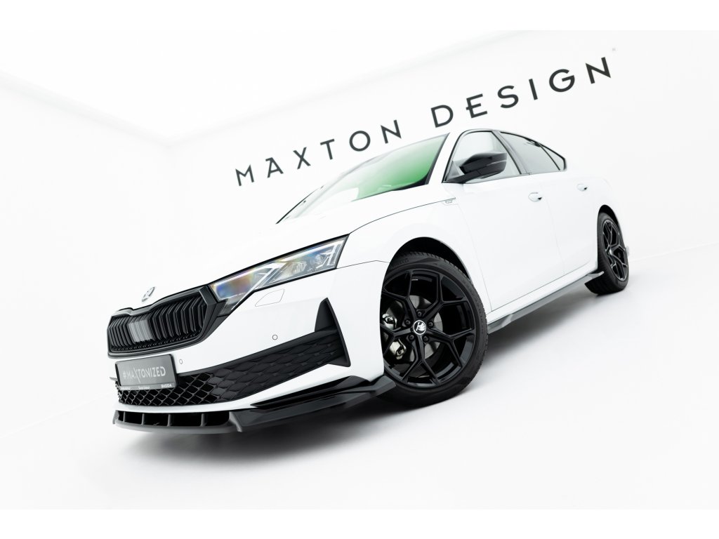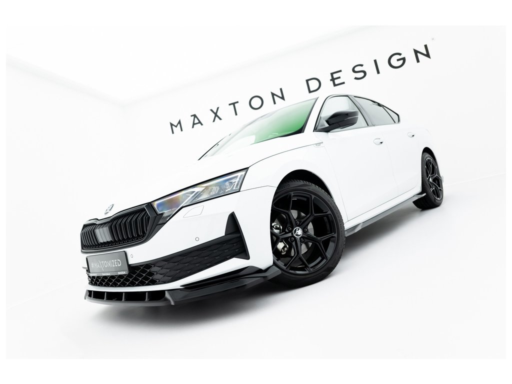 Maxton Design spoiler pod přední nárazník pro vozidlo Škoda Octavia Mk4 Facelift . Povrchová úprava spoileru černý lesklý plast ABS.