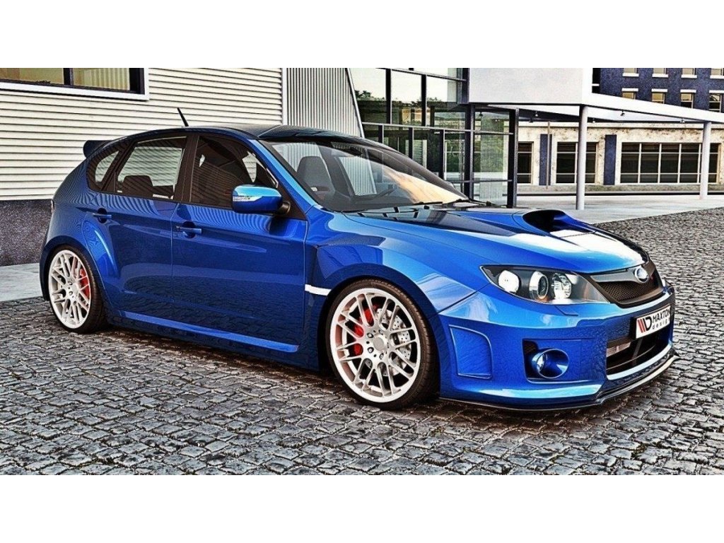 Maxton Design spoiler pod přední nárazník pro vozidlo Subaru Impreza Mk3 . Povrchová úprava spoileru carbon-Look.