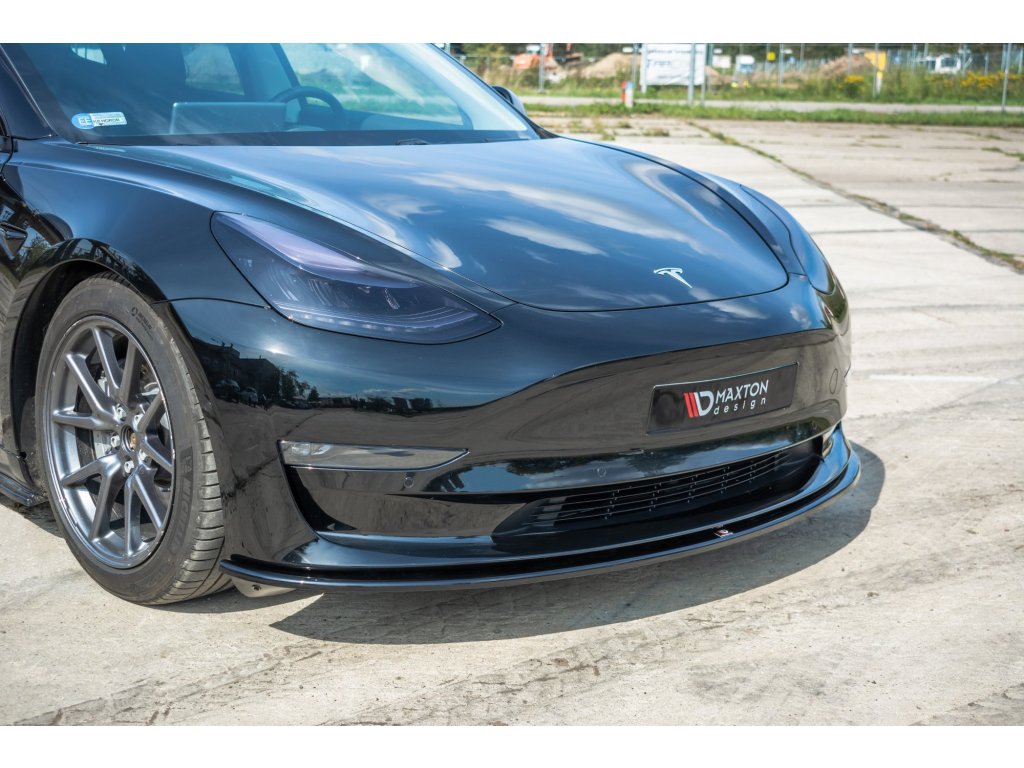 Maxton Design spoiler pod přední nárazník pro vozidlo Tesla Model 3 . Povrchová úprava spoileru carbon-Look.