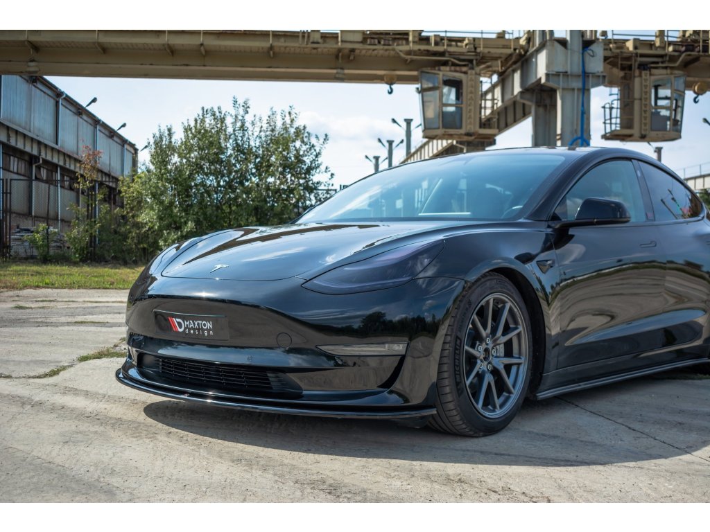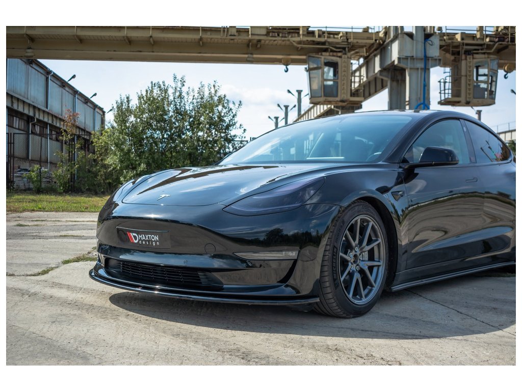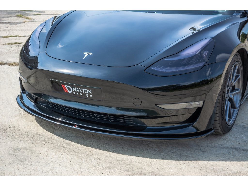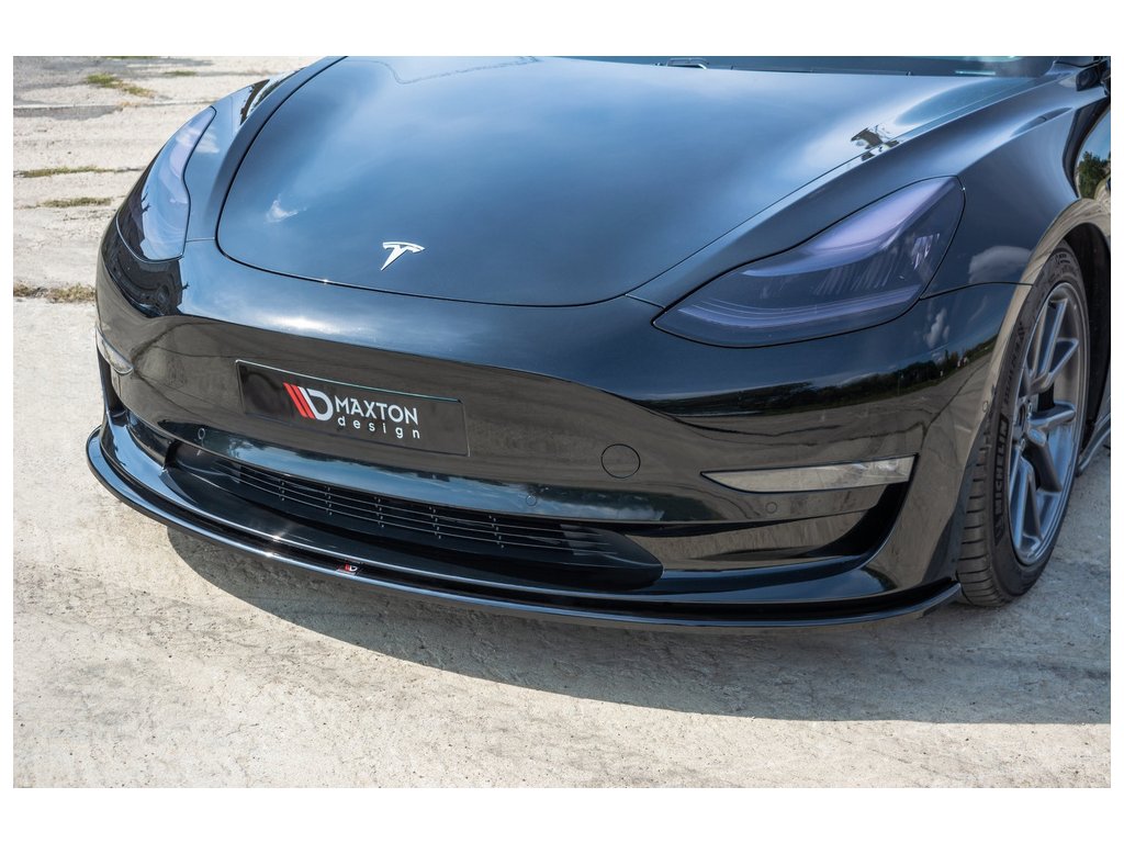 Maxton Design spoiler pod přední nárazník pro vozidlo Tesla Model 3 Mk1 . Povrchová úprava spoileru černý lesklý plast ABS.