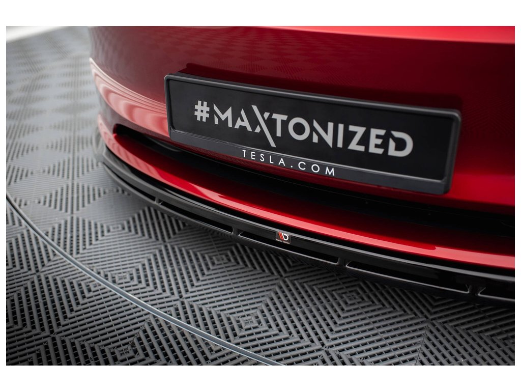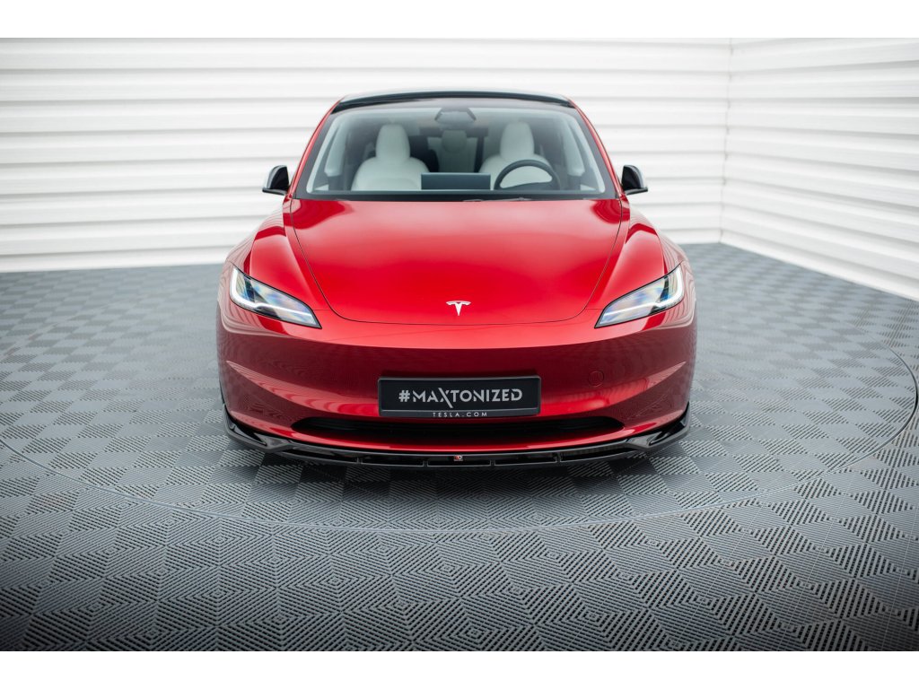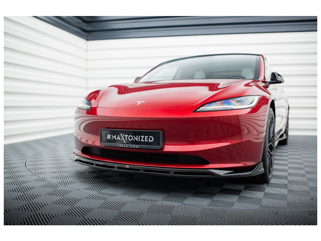 Maxton Design spoiler pod přední nárazník pro vozidlo Tesla Model 3 Mk1 Project Highland Facelift . Povrchová úprava spoileru černý lesklý plast ABS.