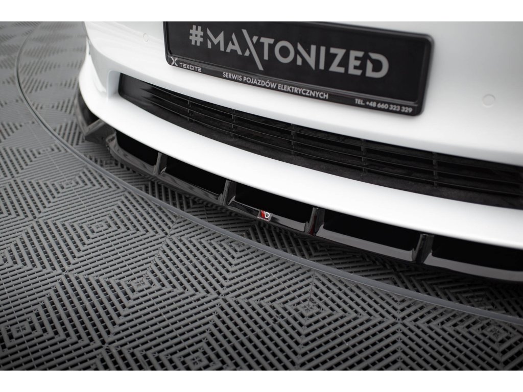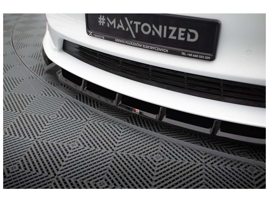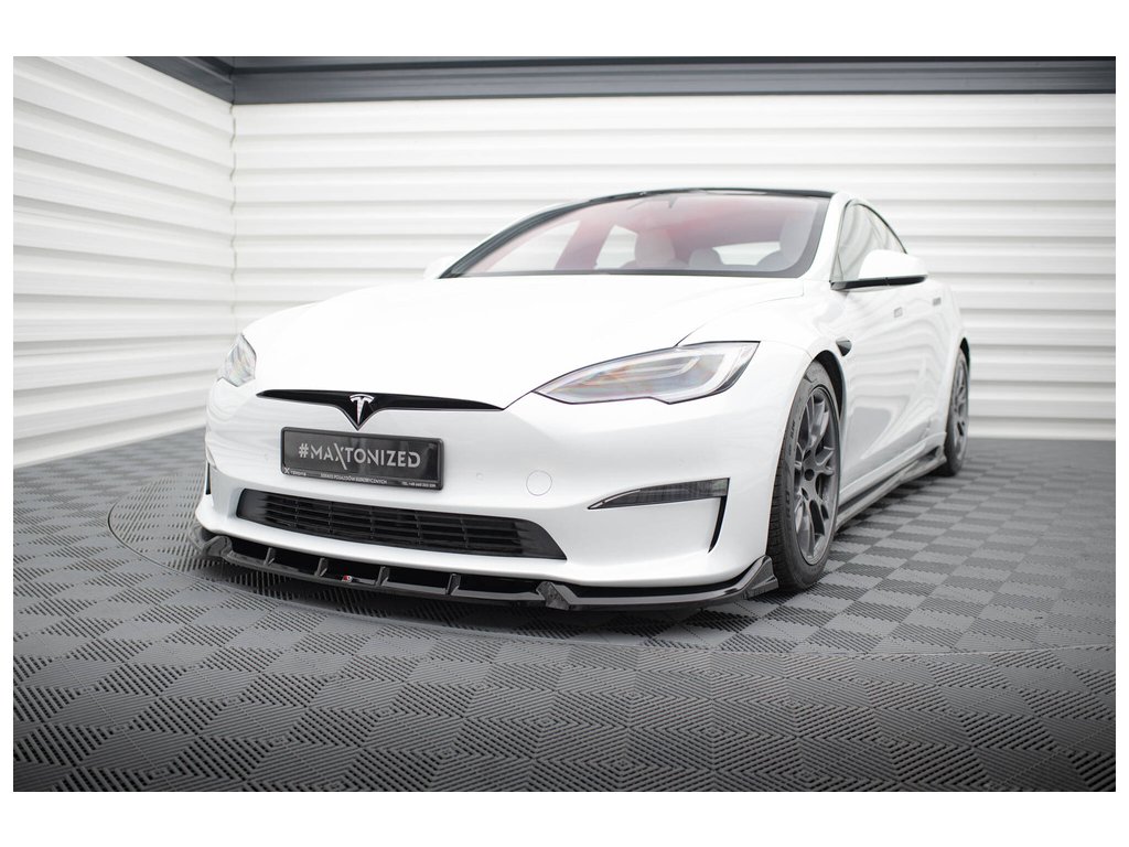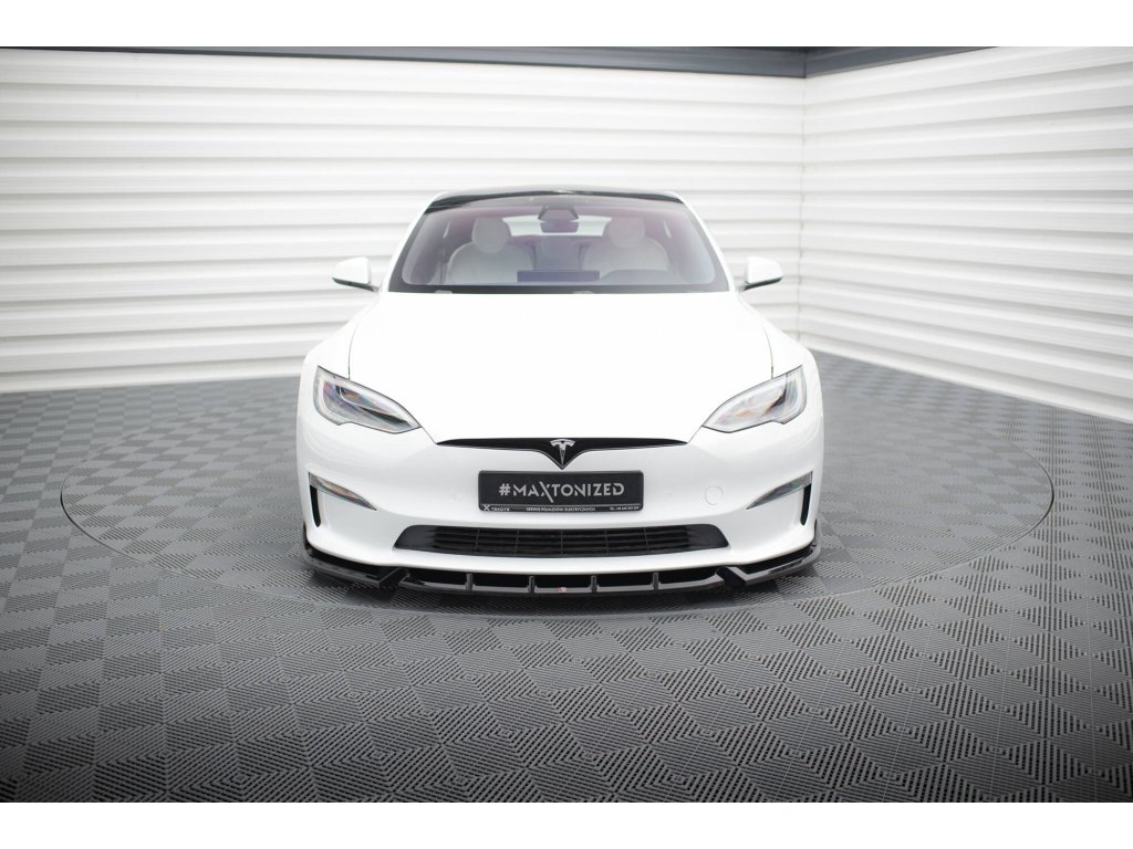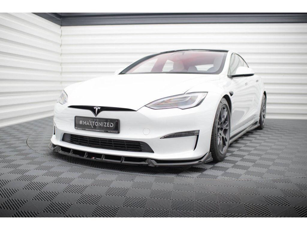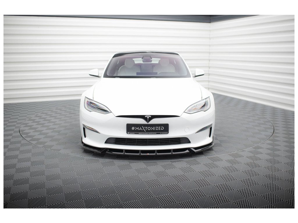 Maxton Design spoiler pod přední nárazník pro vozidlo Tesla Model S Plaid Mk1 Facelift . Povrchová úprava spoileru černý lesklý plast ABS.