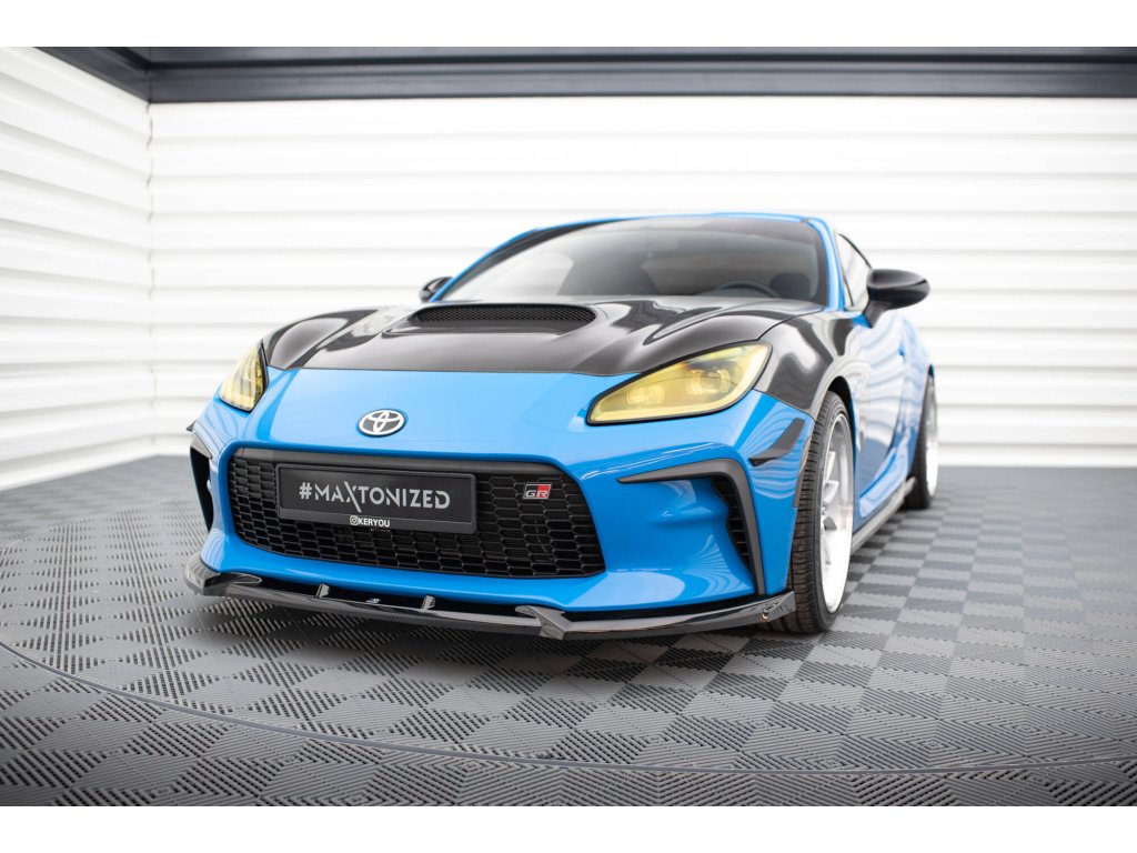 Maxton Design spoiler pod přední nárazník pro vozidlo Toyota GR86 Mk1 . Povrchová úprava spoileru černý lesklý plast ABS.