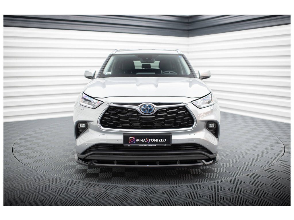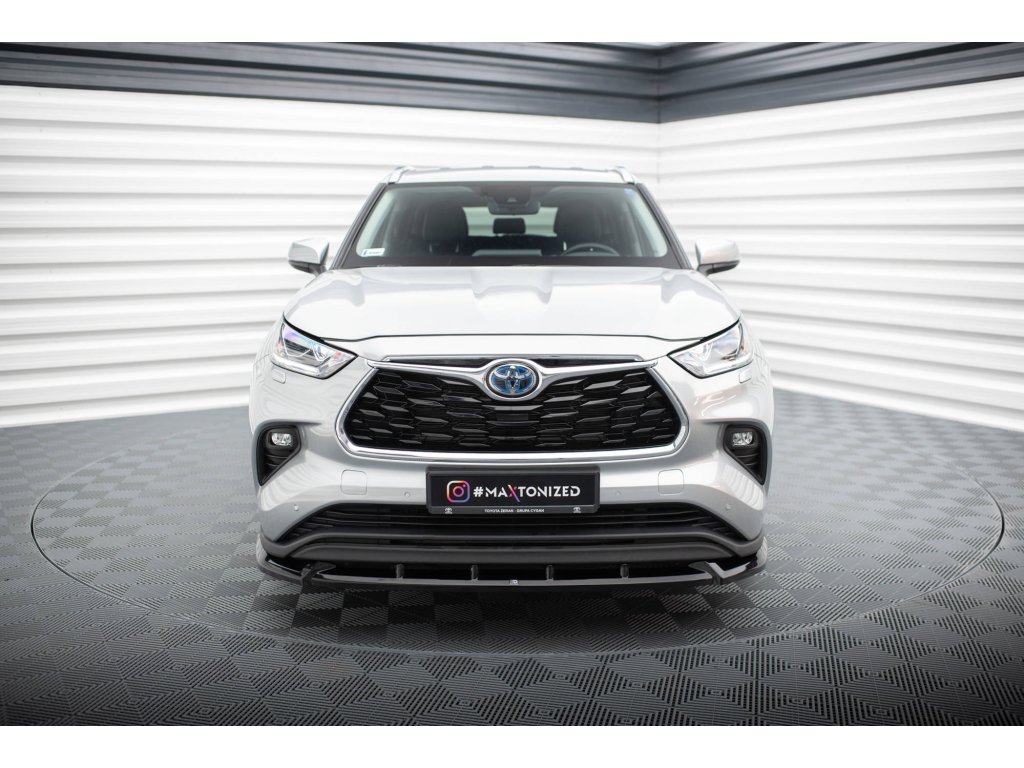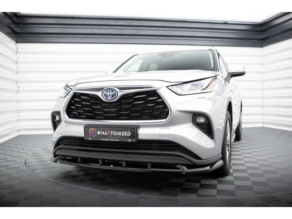 Maxton Design spoiler pod přední nárazník pro vozidlo Toyota Highlander Mk4 . Povrchová úprava spoileru černý lesklý plast ABS.