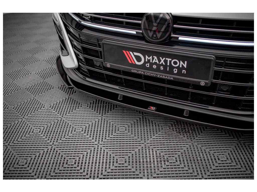 Maxton Design spoiler pod přední nárazník pro vozidlo Volkswagen Arteon R . Povrchová úprava spoileru černý lesklý plast ABS.