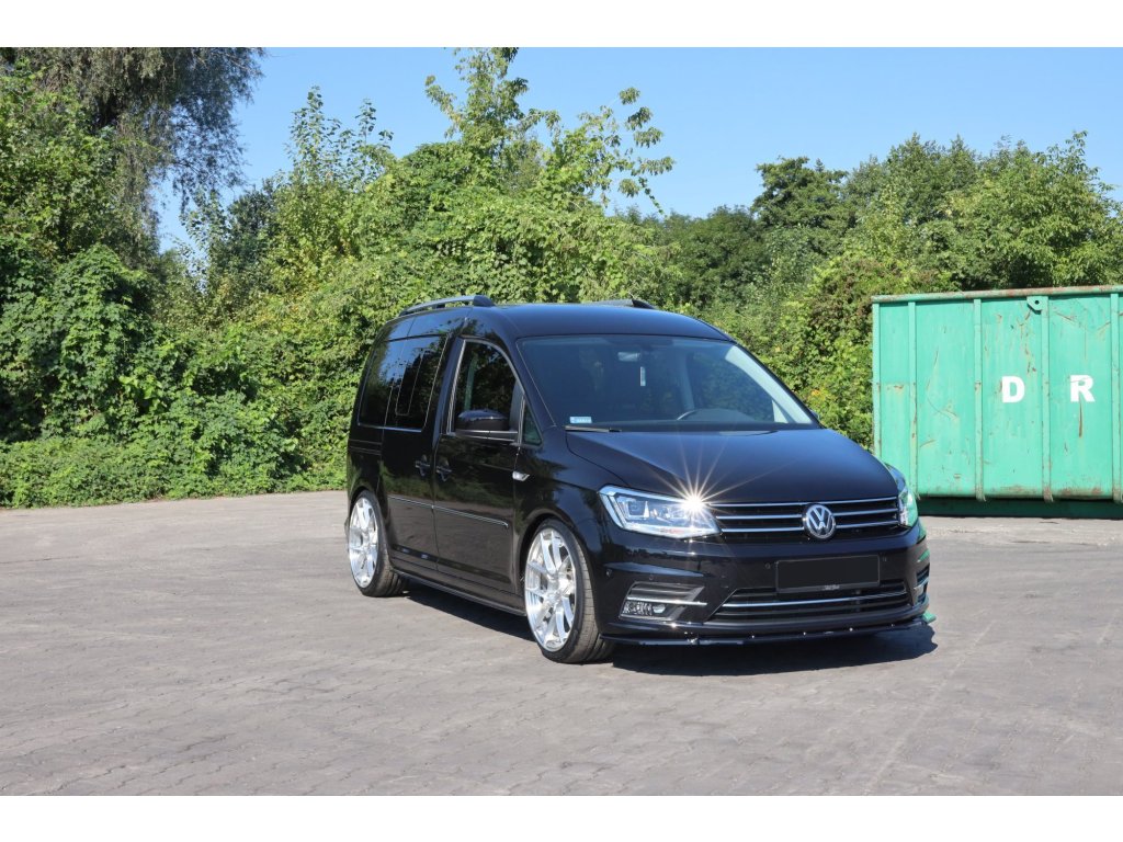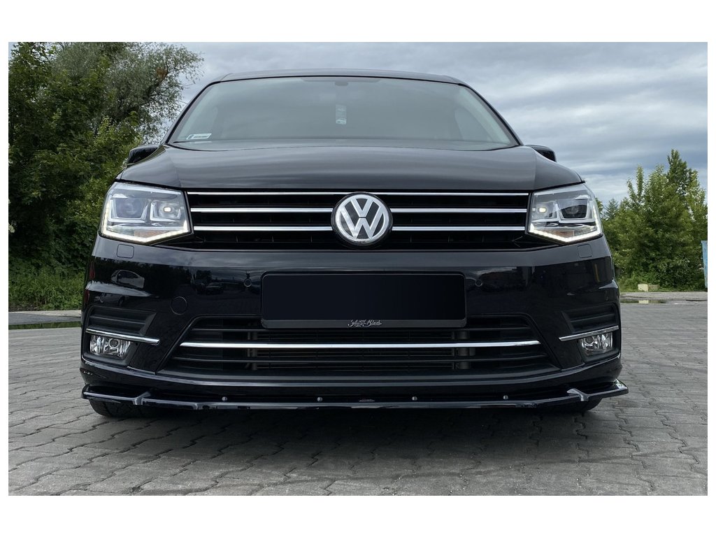 Maxton Design spoiler pod přední nárazník pro vozidlo Volkswagen Caddy Mk 4 . Povrchová úprava spoileru černý lesklý plast ABS.