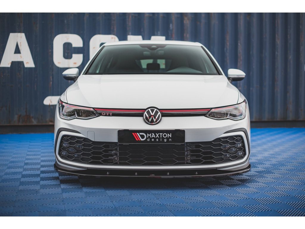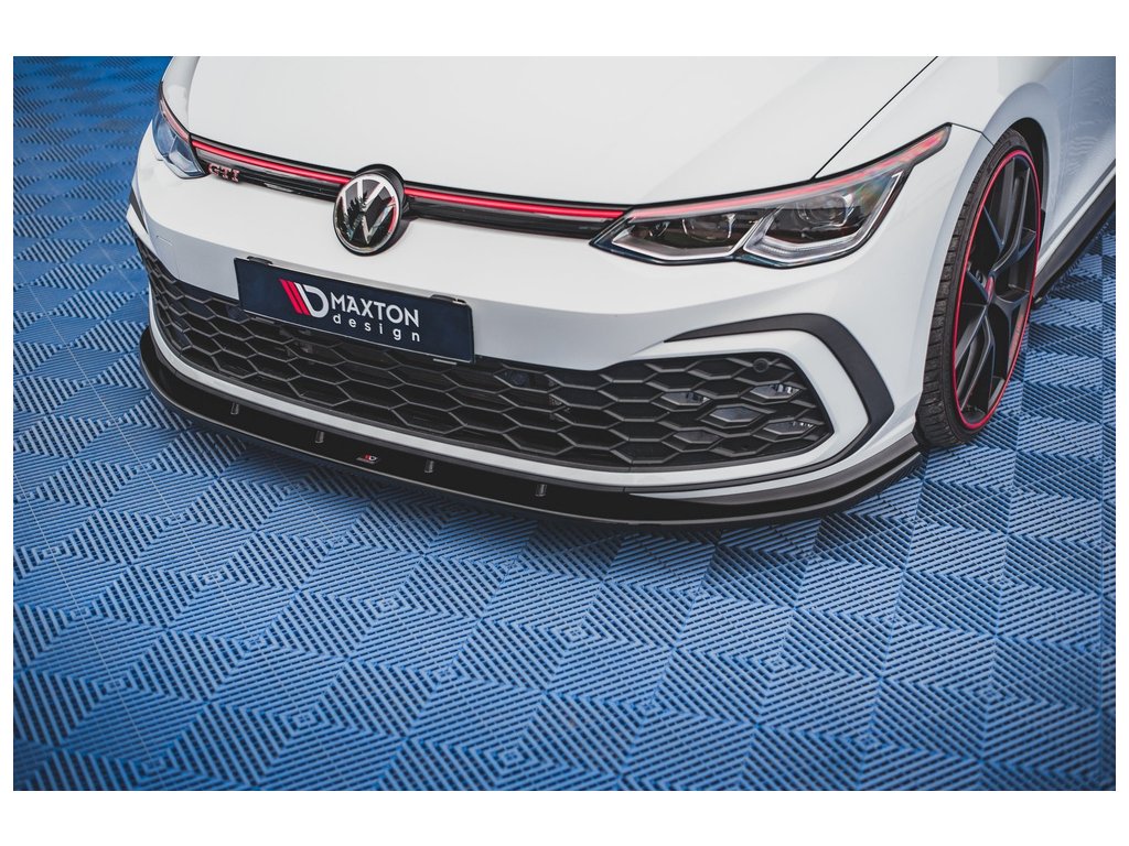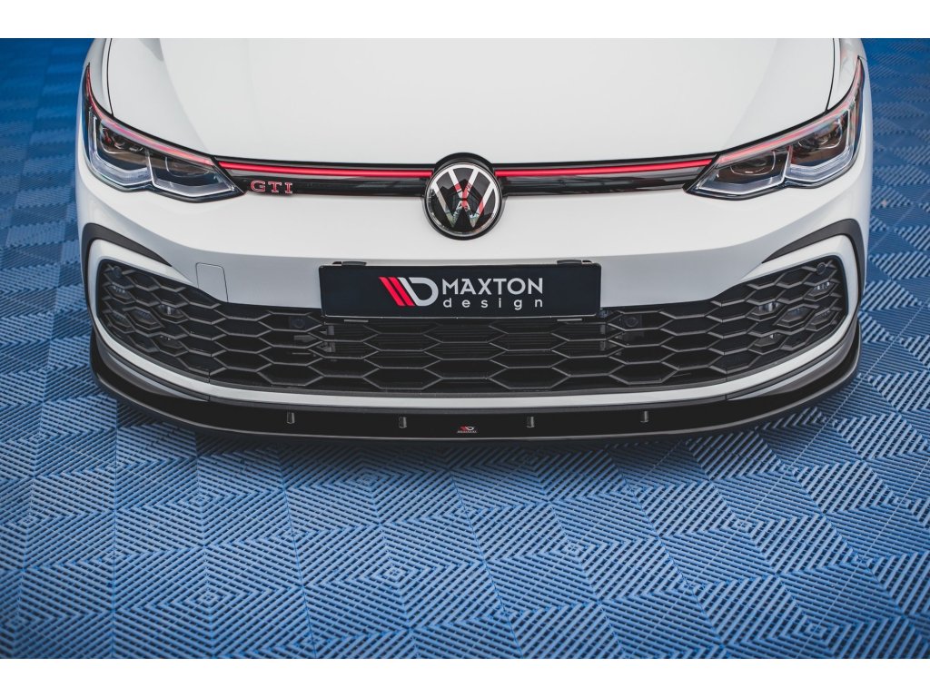 Maxton Design spoiler pod přední nárazník pro vozidlo Volkswagen Golf GTI Mk8 . Povrchová úprava spoileru černý lesklý plast ABS.