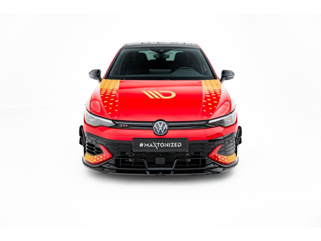 Maxton Design spoiler pod přední nárazník pro vozidlo Volkswagen Golf GTI Mk8 Facelift . Povrchová úprava spoileru černý lesklý plast ABS.