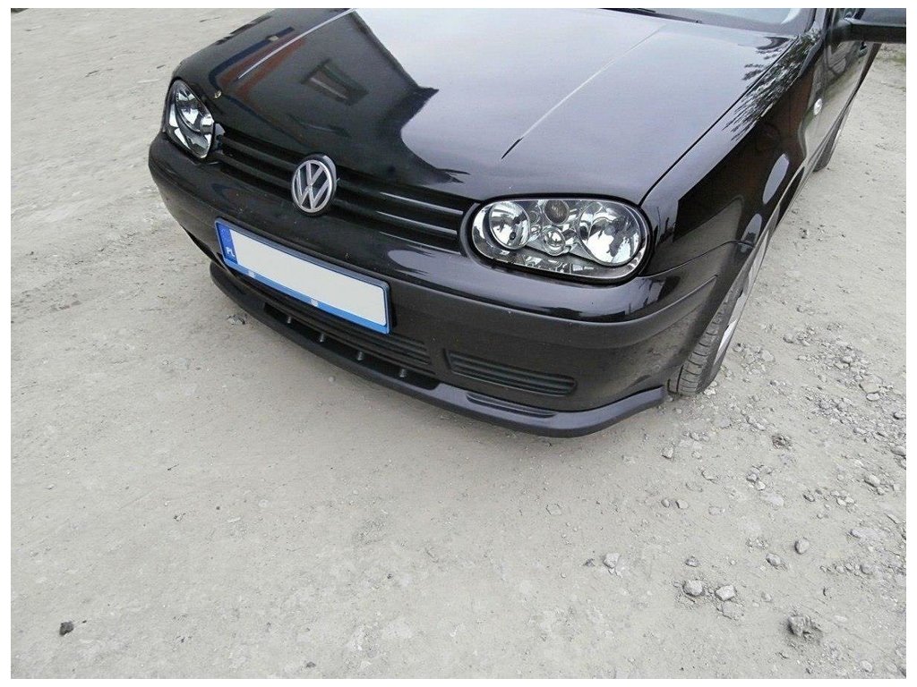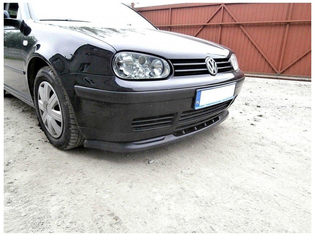 Maxton Design spoiler pod přední nárazník pro vozidlo Volkswagen Golf Mk4 . Povrchová úprava spoileru černý lesklý plast ABS.