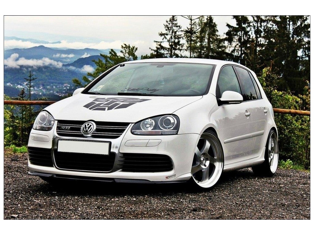 Maxton Design spoiler pod přední nárazník pro vozidlo Volkswagen Golf R Mk5 . Povrchová úprava spoileru černý lesklý plast ABS.