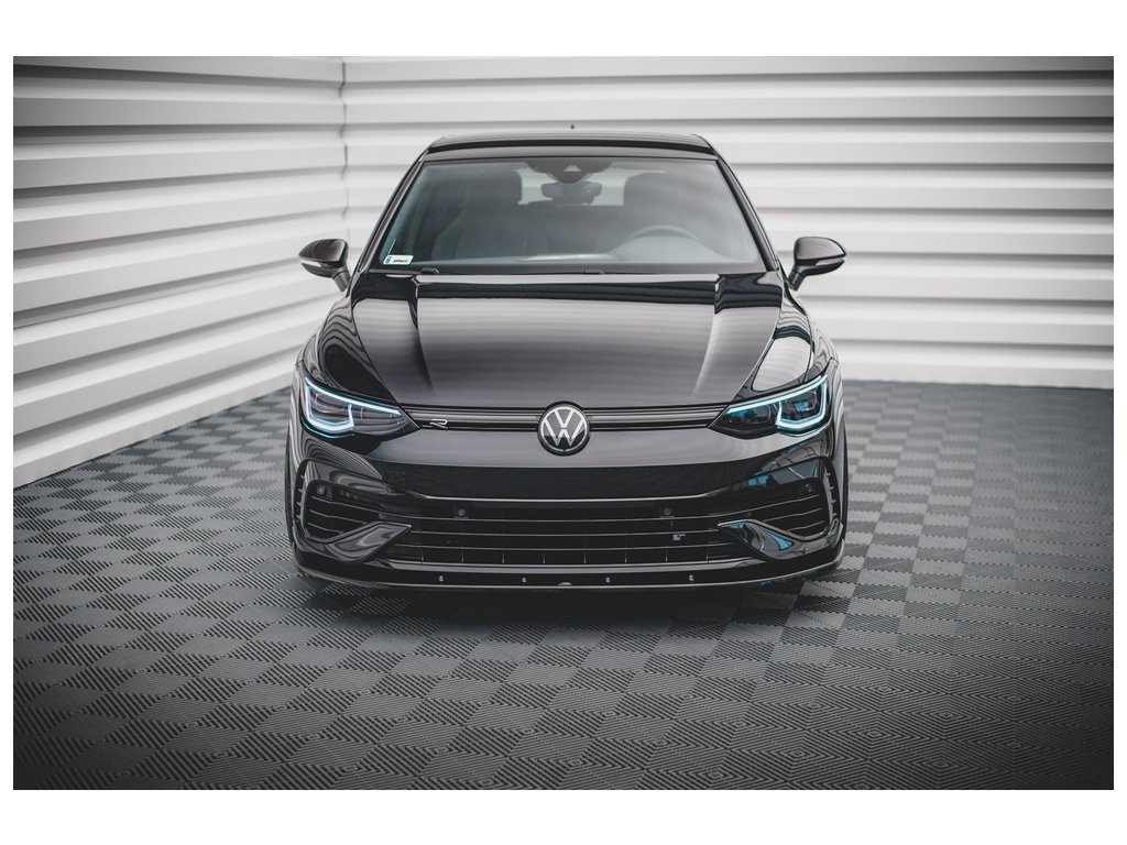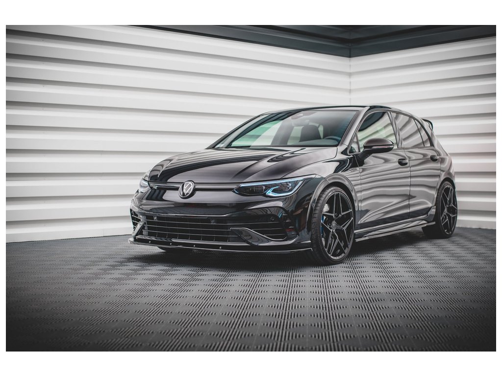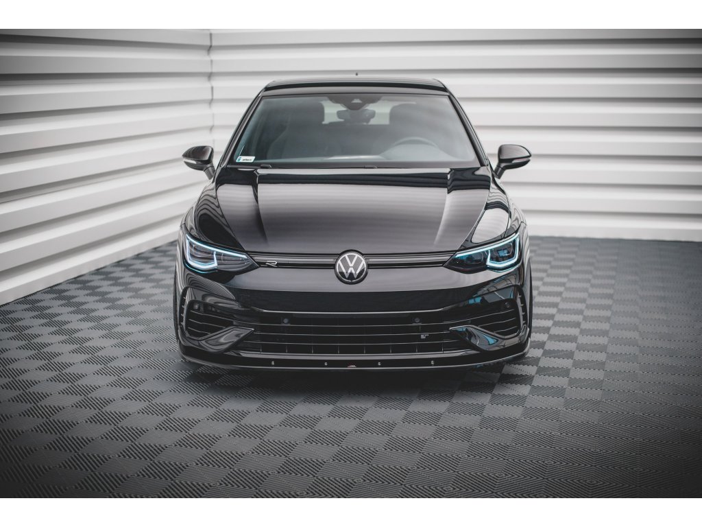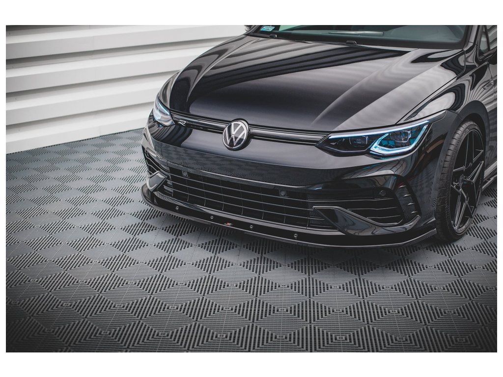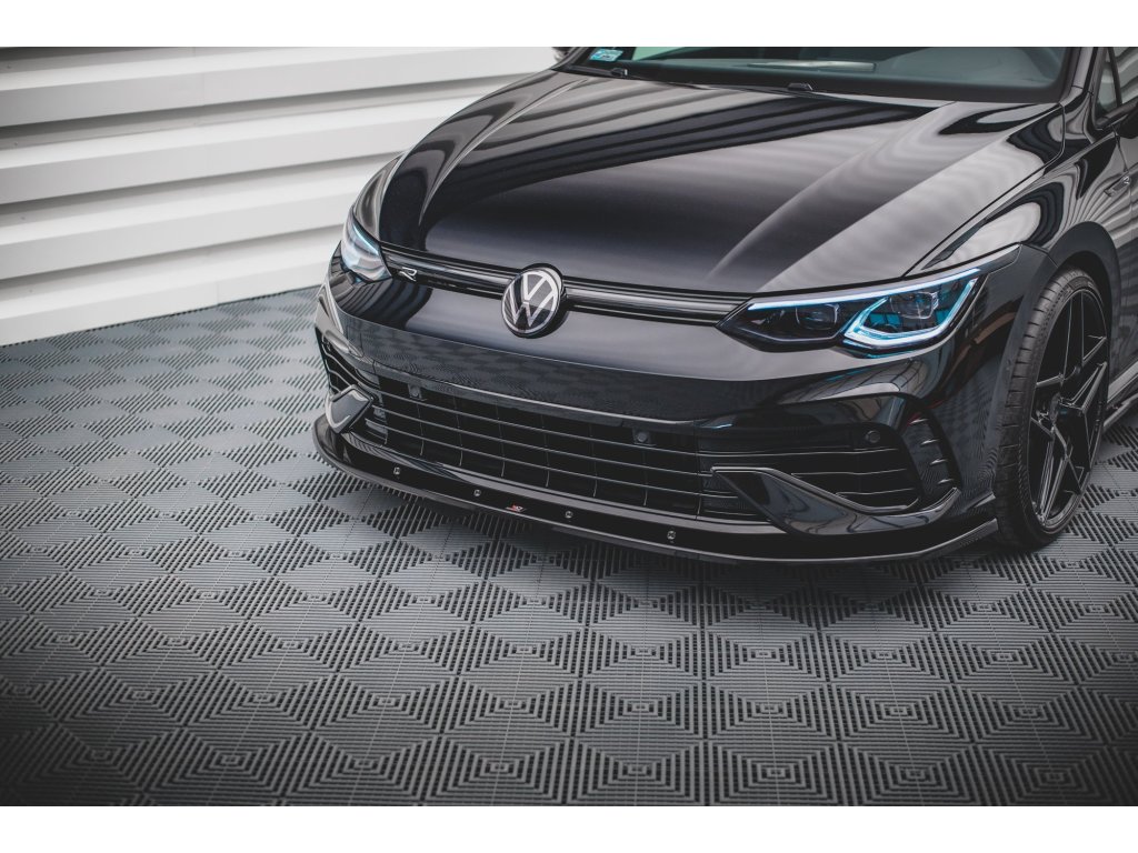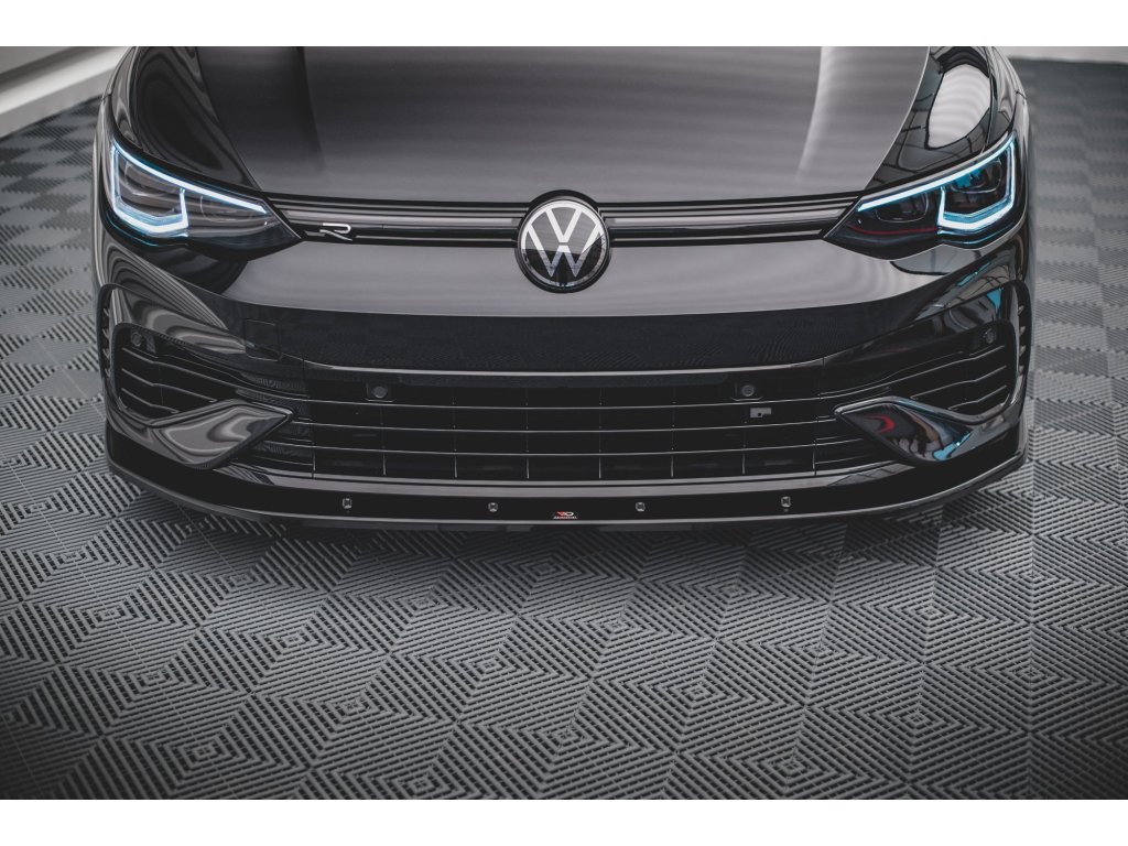 Maxton Design spoiler pod přední nárazník pro vozidlo Volkswagen Golf R Mk8 . Povrchová úprava spoileru černý lesklý plast ABS.