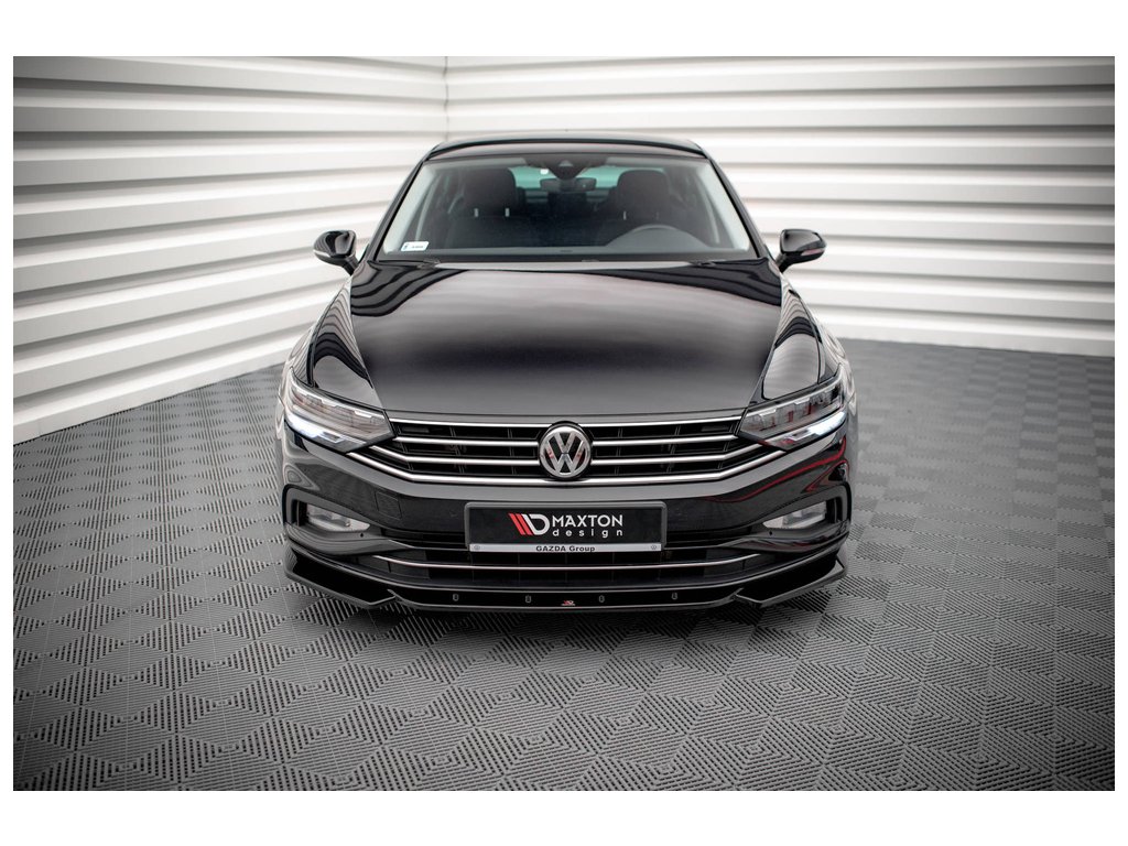 Maxton Design spoiler pod přední nárazník pro vozidlo Volkswagen Passat Mk8 (B8) Facelift . Povrchová úprava spoileru černý lesklý plast ABS.
