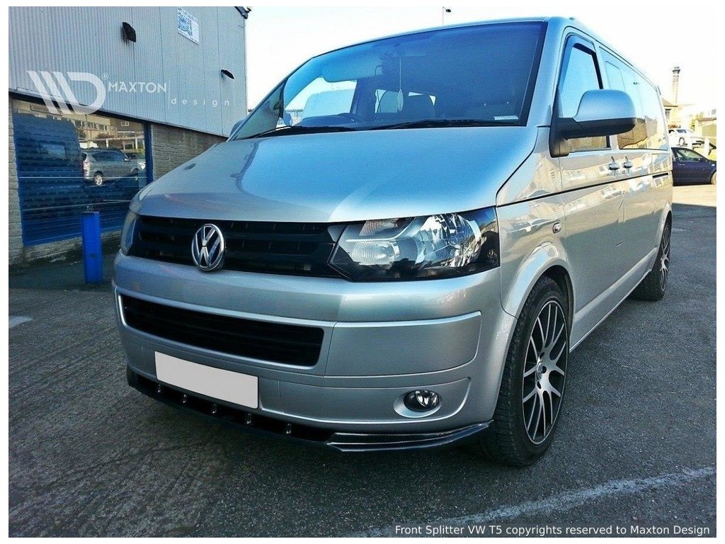 Maxton Design spoiler pod přední nárazník pro vozidlo Volkswagen T5 . Povrchová úprava spoileru černý lesklý plast ABS.