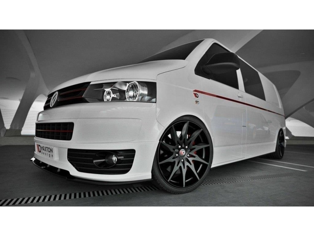 Maxton Design spoiler pod přední nárazník pro vozidlo Volkswagen T5 . Povrchová úprava spoileru černý lesklý plast ABS.