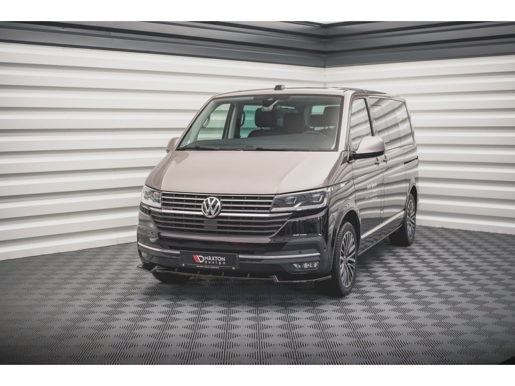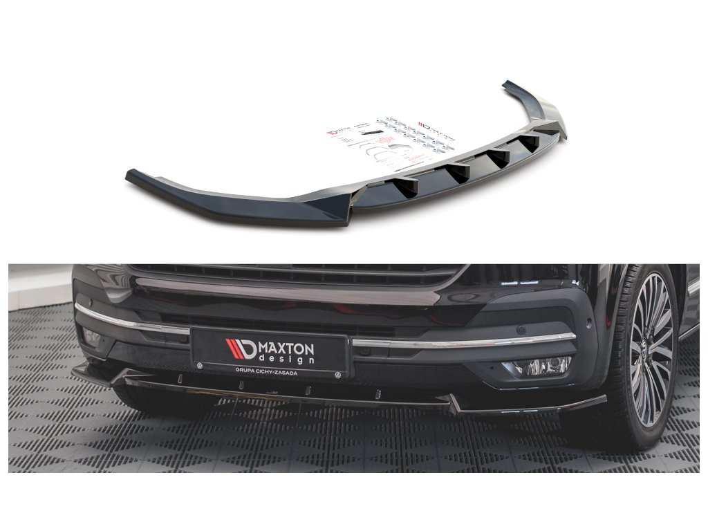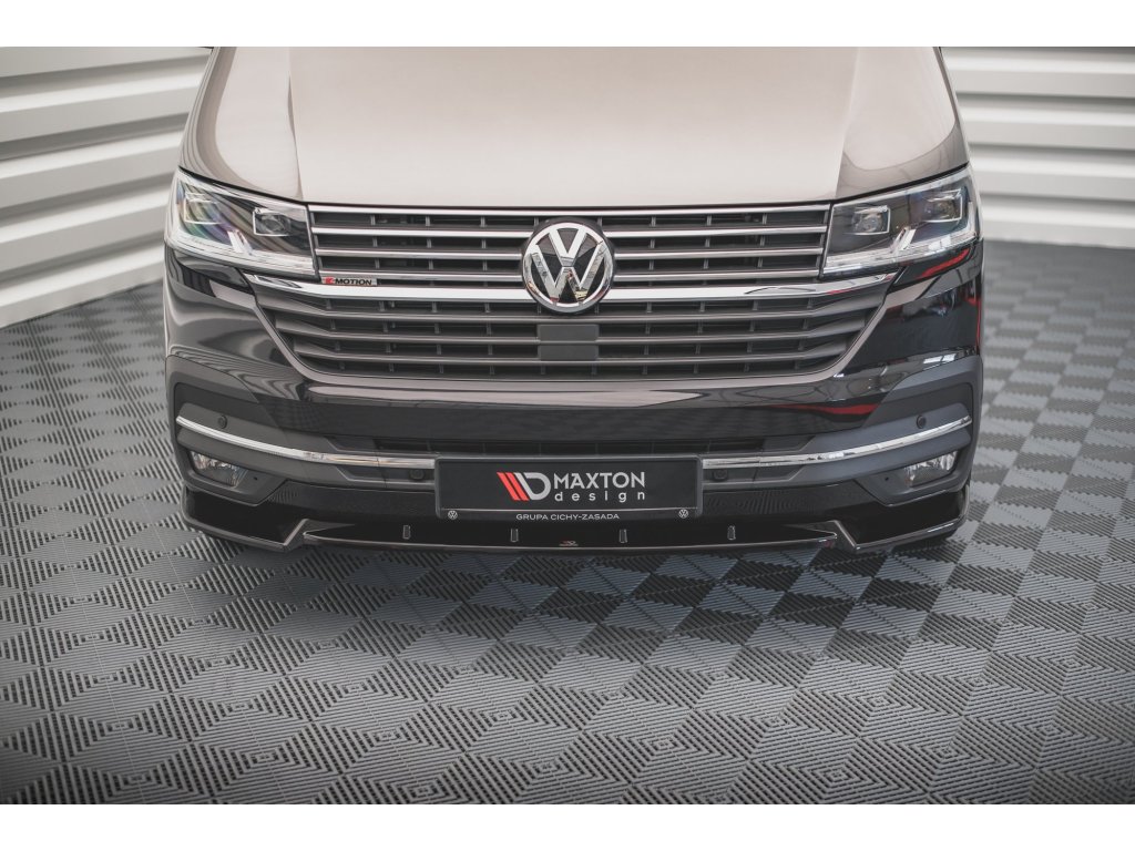 Maxton Design spoiler pod přední nárazník pro vozidlo Volkswagen T6 . Povrchová úprava spoileru carbon-Look.