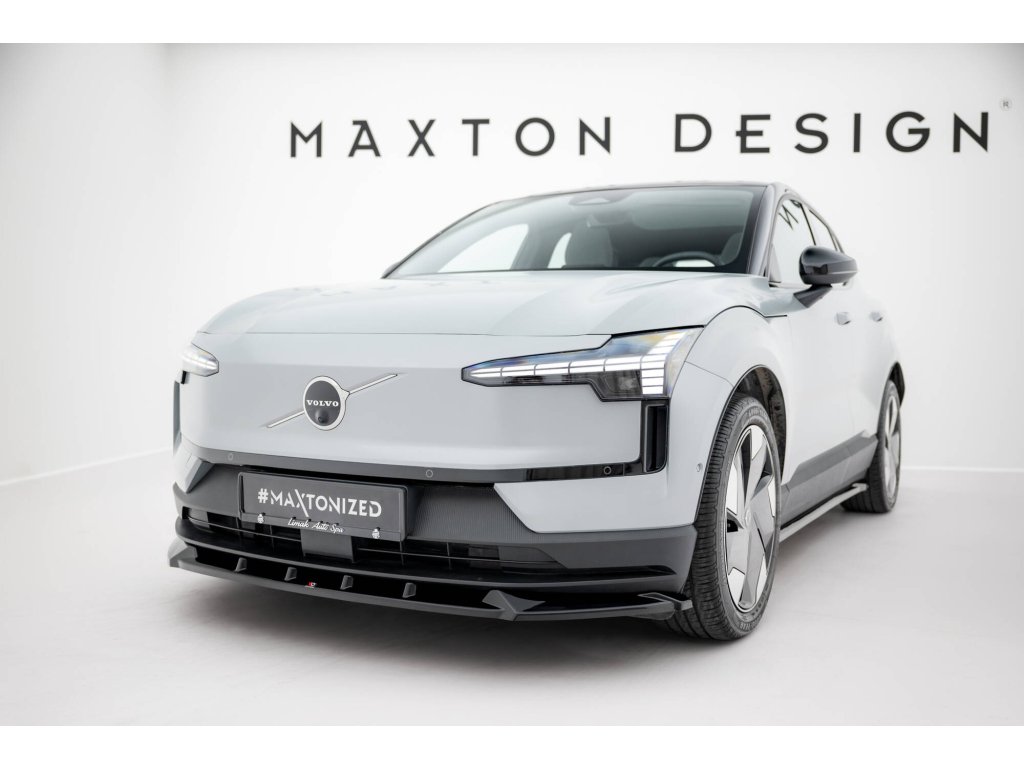 Maxton Design spoiler pod přední nárazník pro vozidlo Volvo EX30 Mk1 . Povrchová úprava spoileru černý lesklý plast ABS.