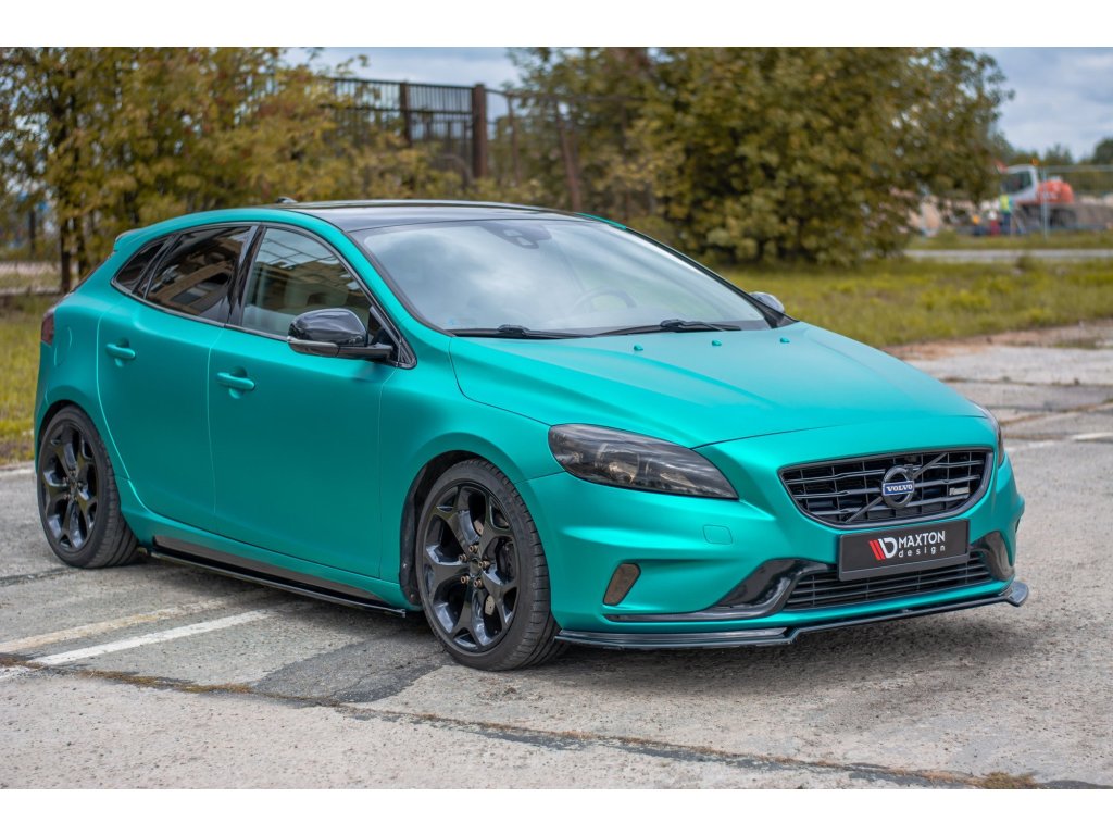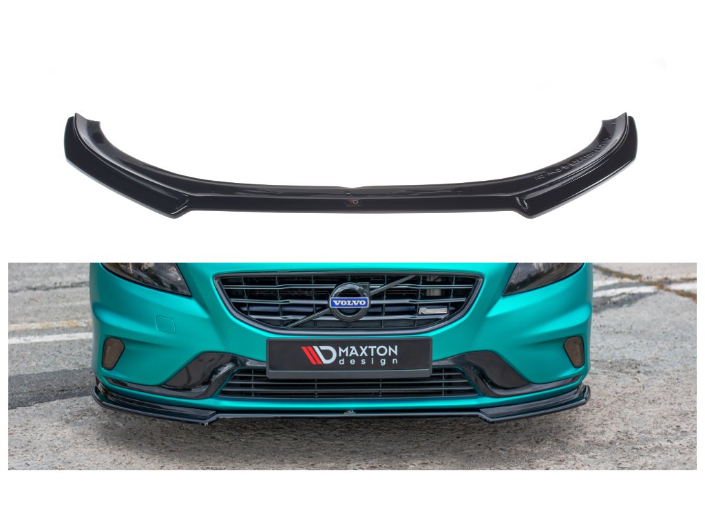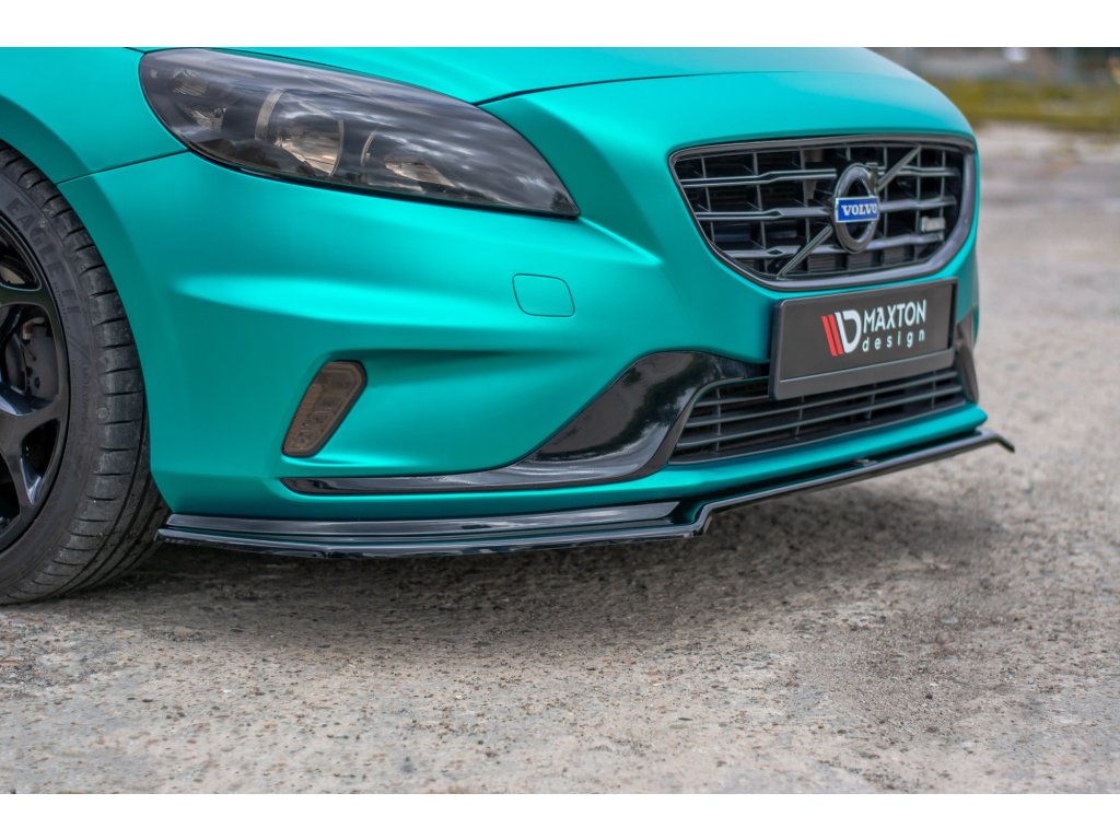 Maxton Design spoiler pod přední nárazník pro vozidlo Volvo V40 R-Design . Povrchová úprava spoileru carbon-Look.