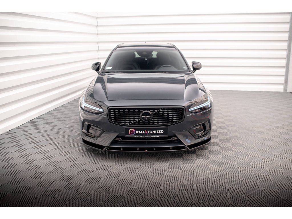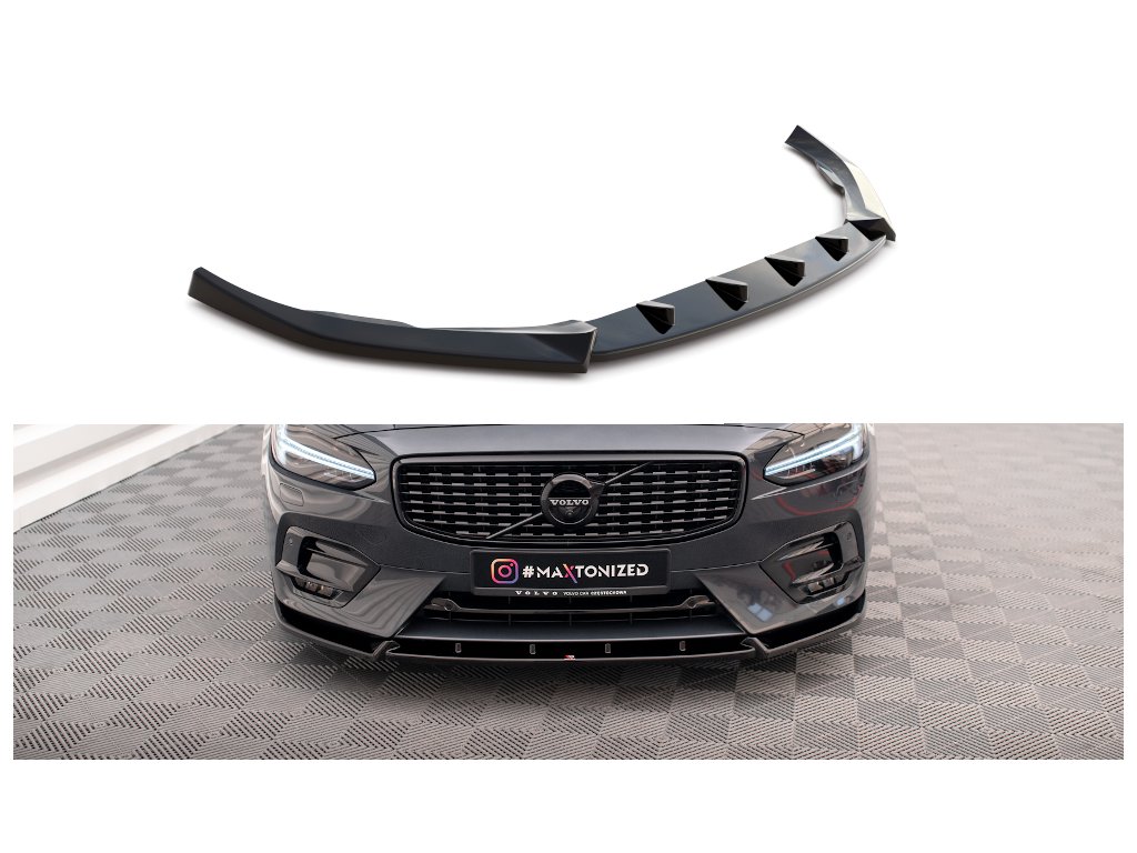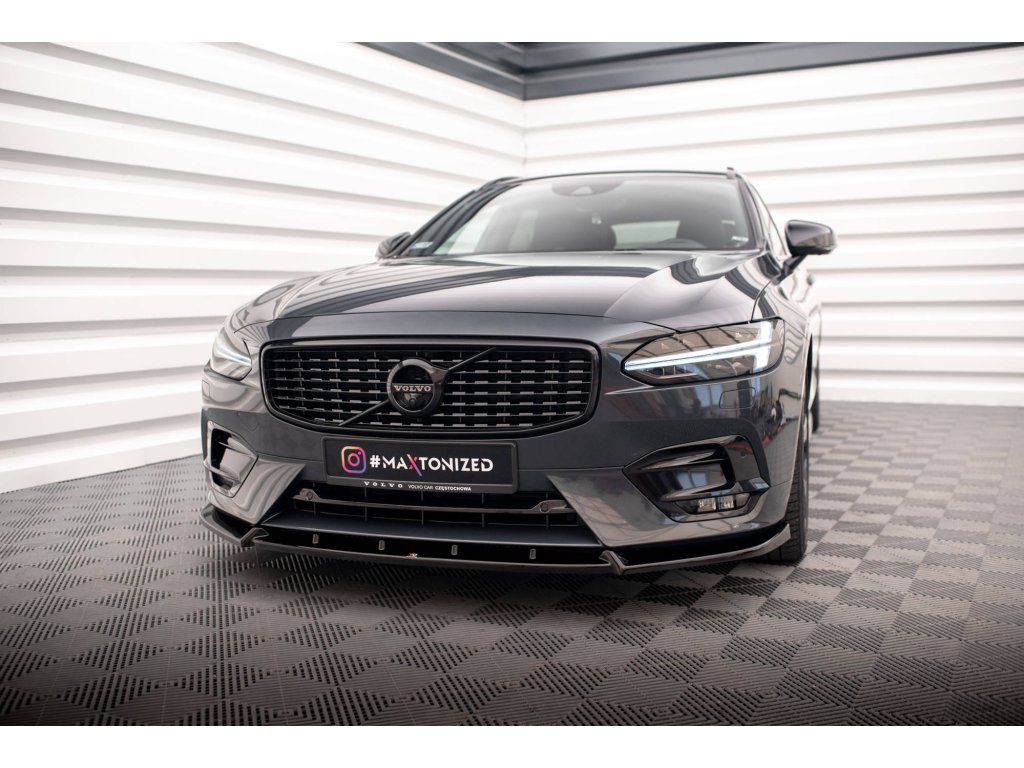 Maxton Design spoiler pod přední nárazník pro vozidlo Volvo V90 Mk2 R-Design . Povrchová úprava spoileru carbon-Look.