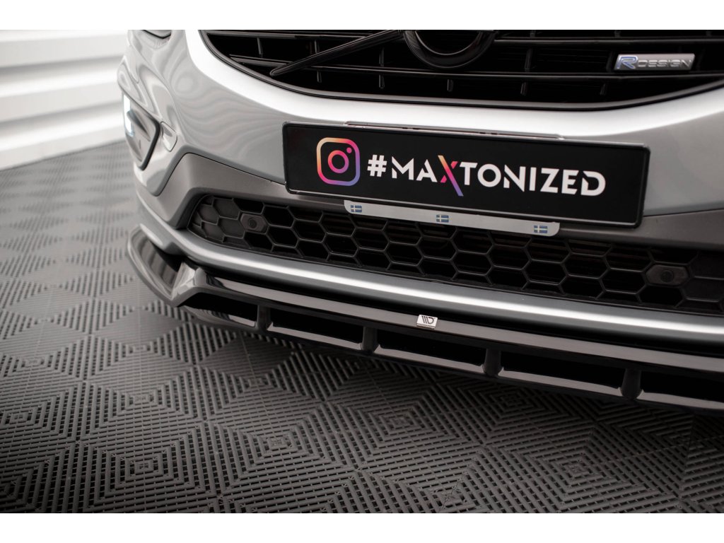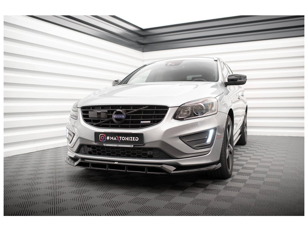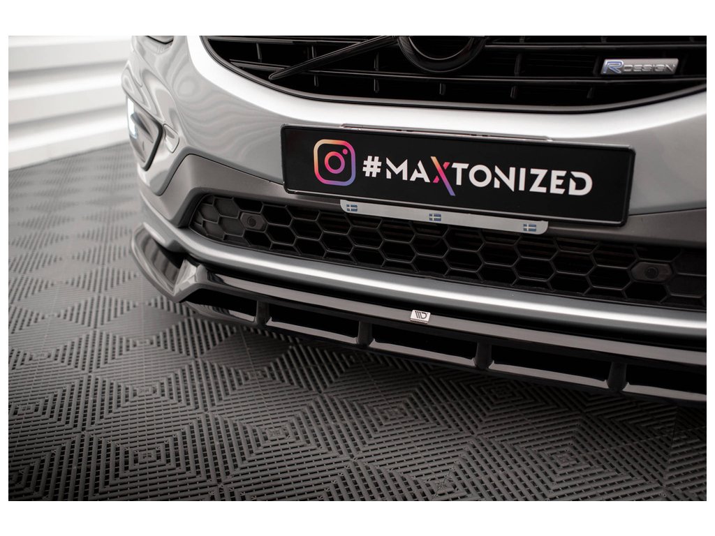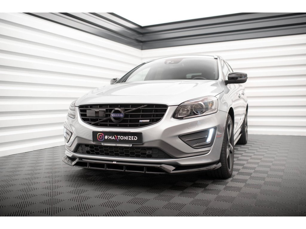 Maxton Design spoiler pod přední nárazník pro vozidlo Volvo XC60 Mk1 Facelift R-Design . Povrchová úprava spoileru černý lesklý plast ABS.