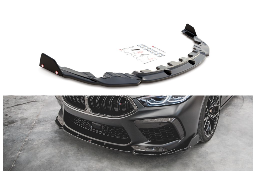 Maxton Design spoiler pod přední nárazník s křidélky ver.1 pro vozidlo BMW M8 Gran Coupe/F93 . Povrchová úprava spoileru carbon-Look.