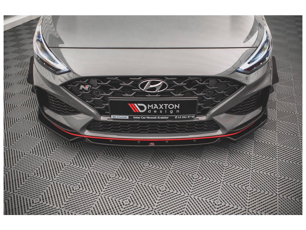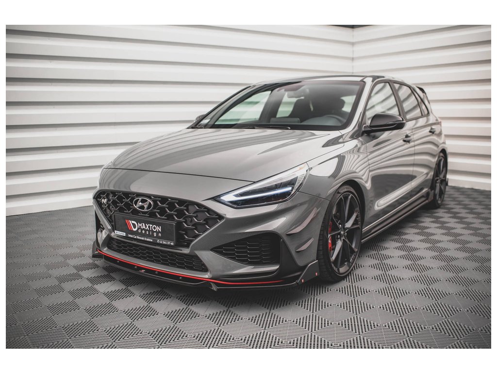 Maxton Design spoiler pod přední nárazník s křidélky ver.1 pro vozidlo Hyundai i30 N MK3 Facelift . Povrchová úprava spoileru černý lesklý plast ABS.