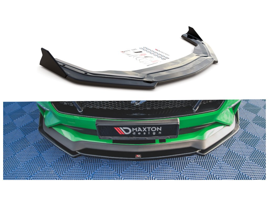 Maxton Design spoiler pod přední nárazník s křidélky ver.2 pro vozidlo Ford Mustang MK6 GT Facelift . Povrchová úprava spoileru carbon-Look.