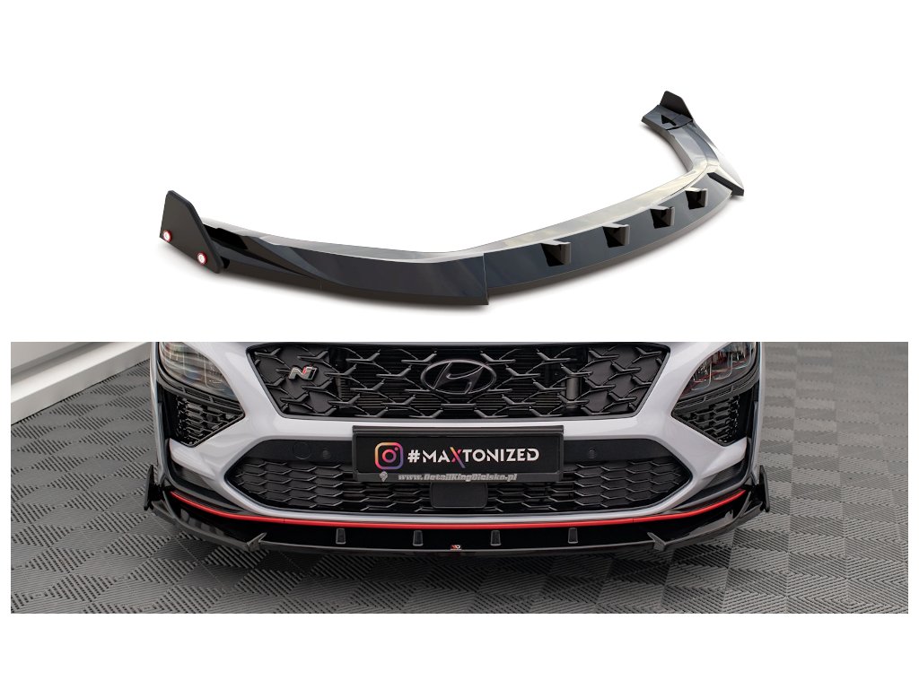 Maxton Design spoiler pod přední nárazník s křidélky ver.2 pro vozidlo Hyundai Kona N Mk1 . Povrchová úprava spoileru carbon-Look.