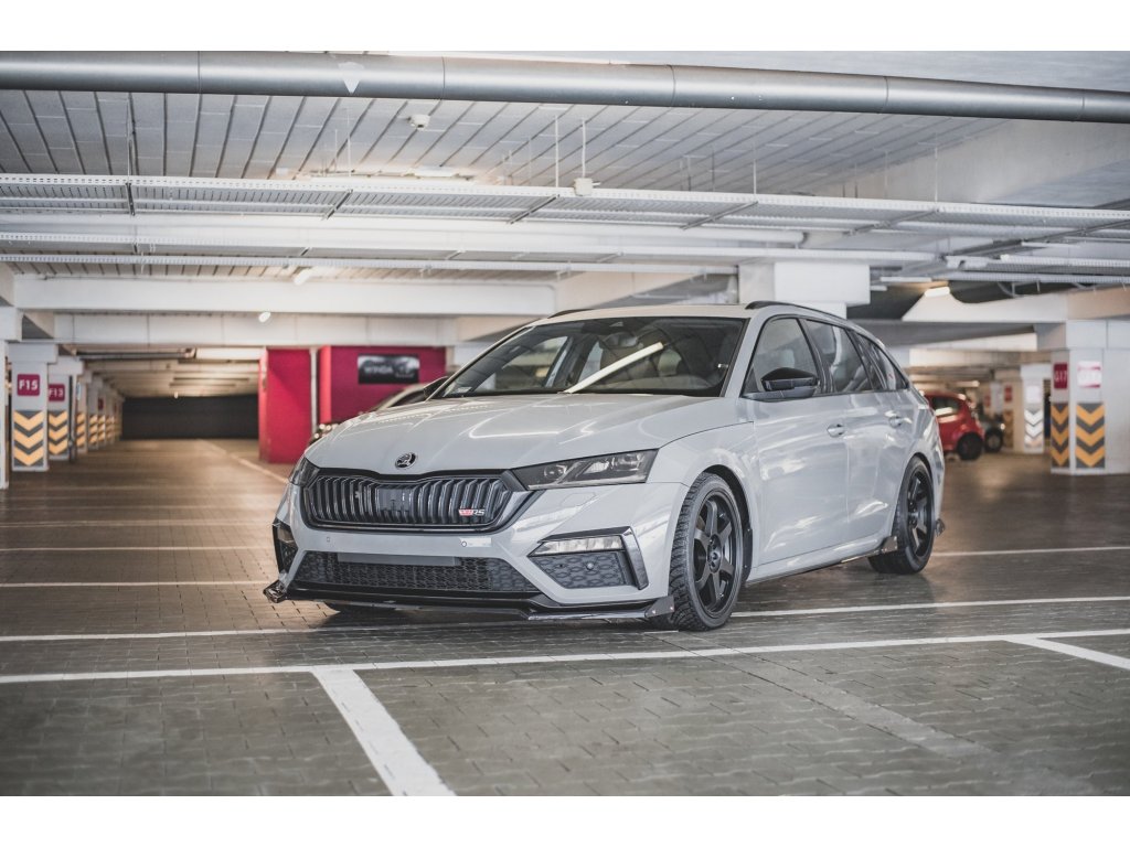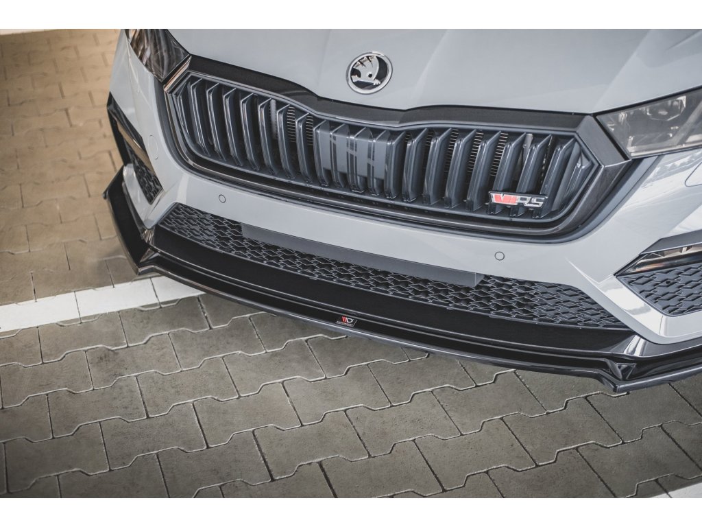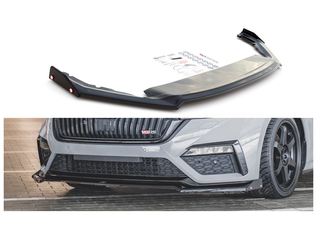 Maxton Design spoiler pod přední nárazník s křidélky ver.2 pro vozidlo Škoda Octavia RS Mk4 . Povrchová úprava spoileru carbon-Look.