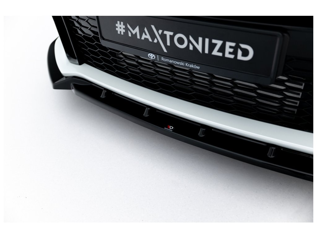 Maxton Design spoiler pod přední nárazník s křidélky ver.2 pro vozidlo Toyota GR Yaris Mk3 . Povrchová úprava spoileru černý lesklý plast ABS.