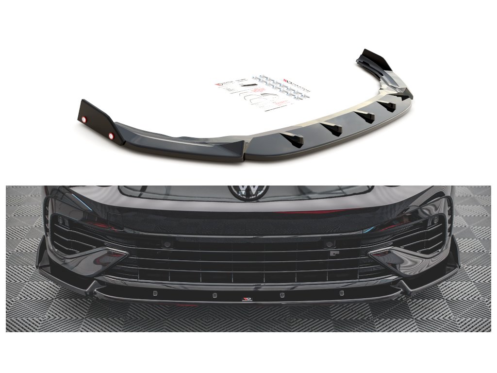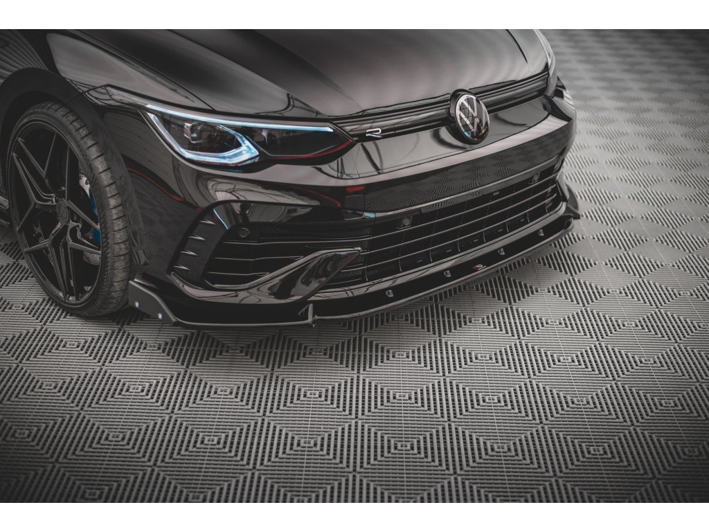 Maxton Design spoiler pod přední nárazník s křidélky ver.2 pro vozidlo Volkswagen Golf R Mk8 . Povrchová úprava spoileru carbon-Look.