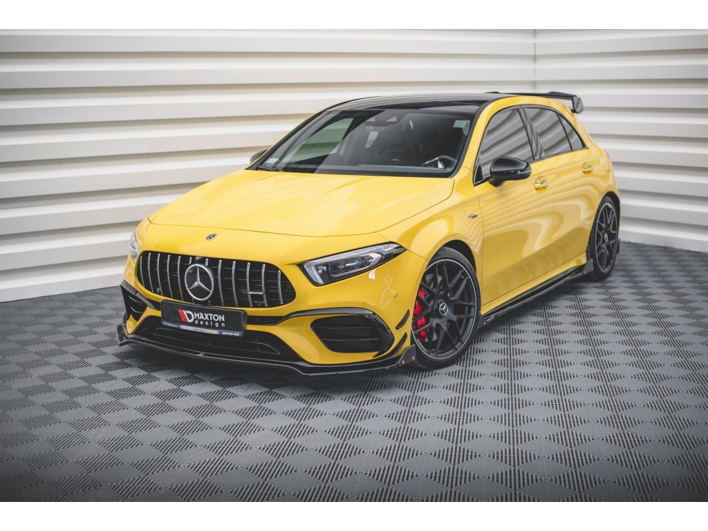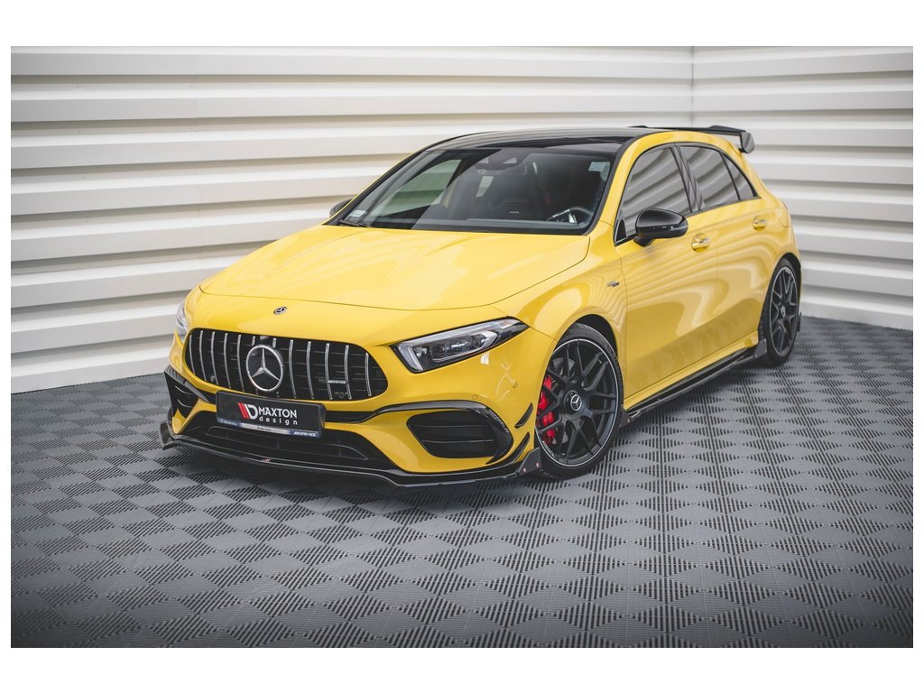 Maxton Design spoiler pod přední nárazník s křidélky ver.3 pro vozidlo Mercedes třída A W177 45 AMG . Povrchová úprava spoileru černý lesklý plast ABS.