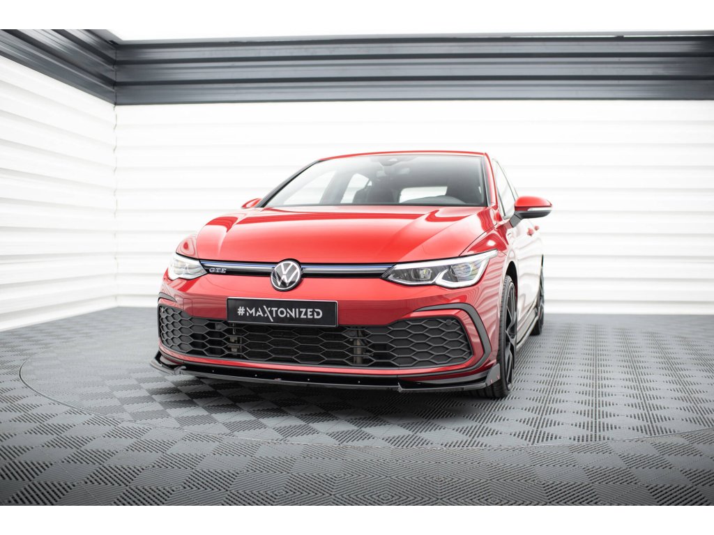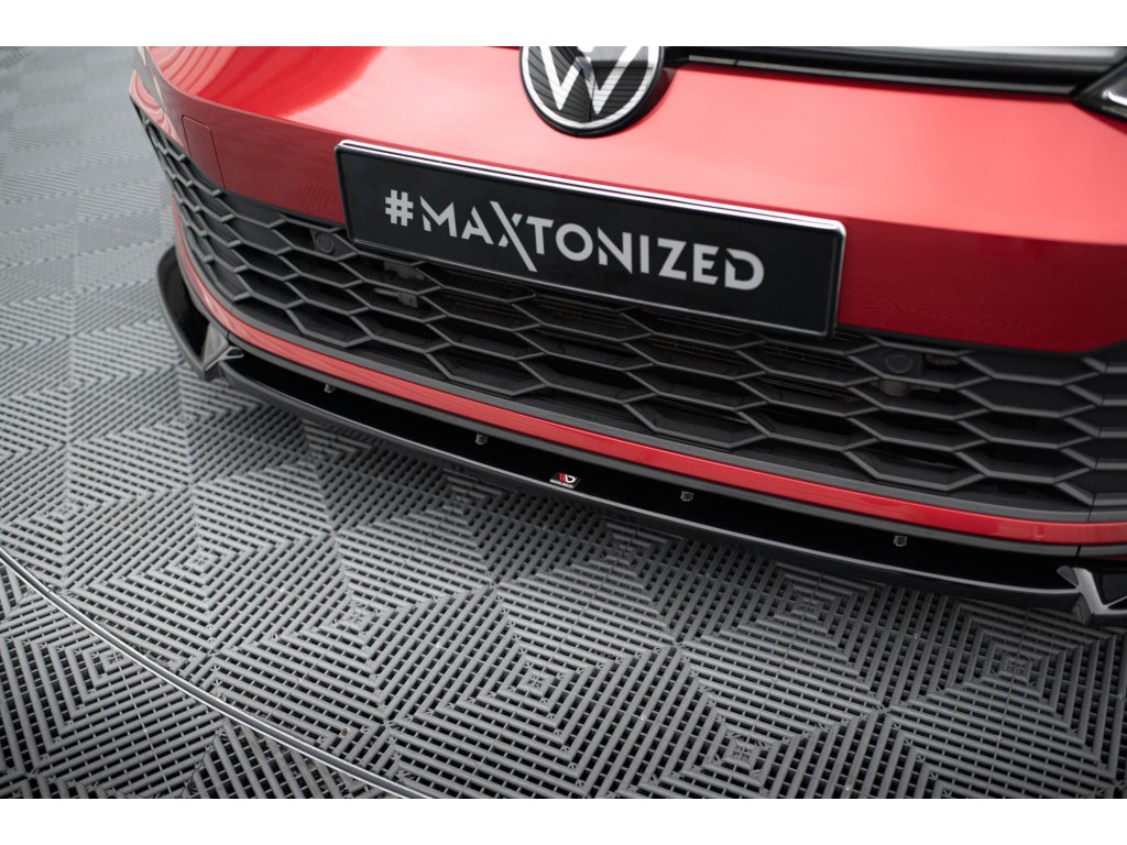 Maxton Design spoiler pod přední nárazník s křidélky ver.3 pro Volkswagen Golf GTI Mk8, černý lesklý plast ABS