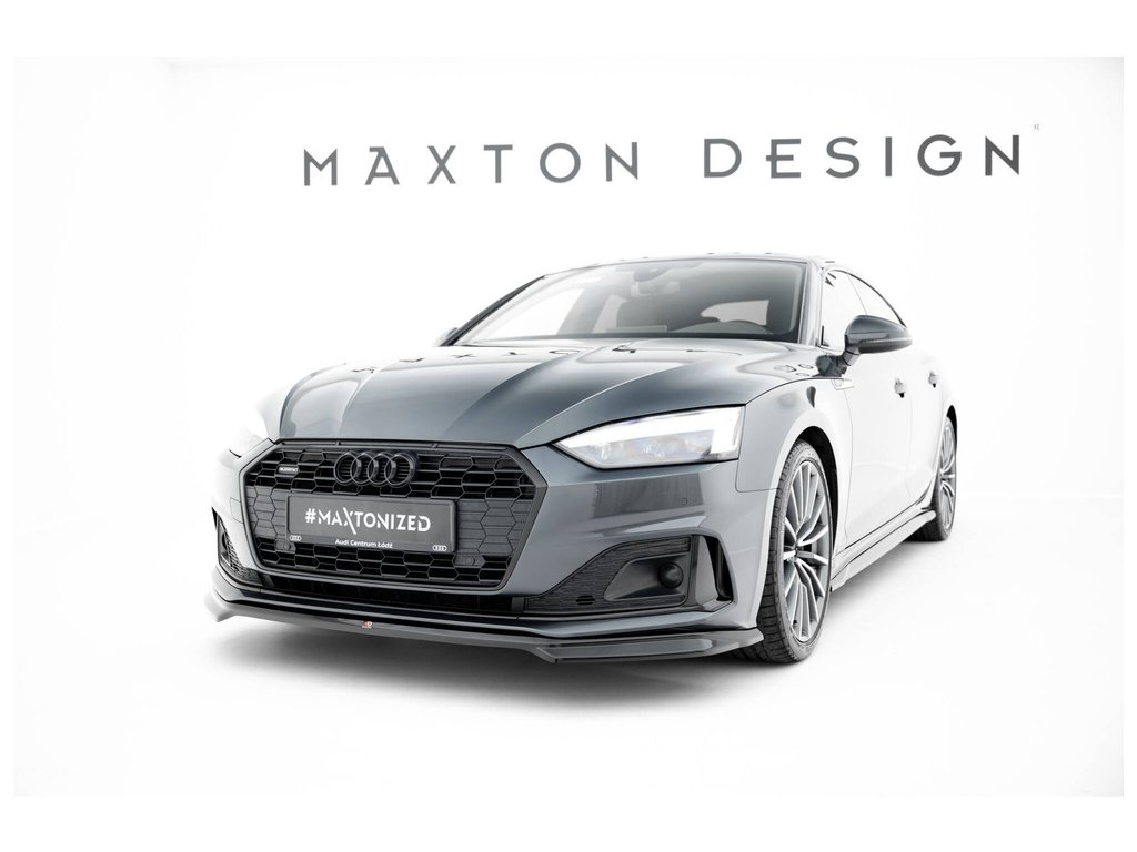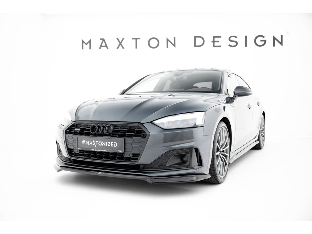 Maxton Design spoiler pod přední nárazník v.1 pro vozidlo Audi A5 F5 Facelift . Povrchová úprava spoileru černý lesklý plast ABS.