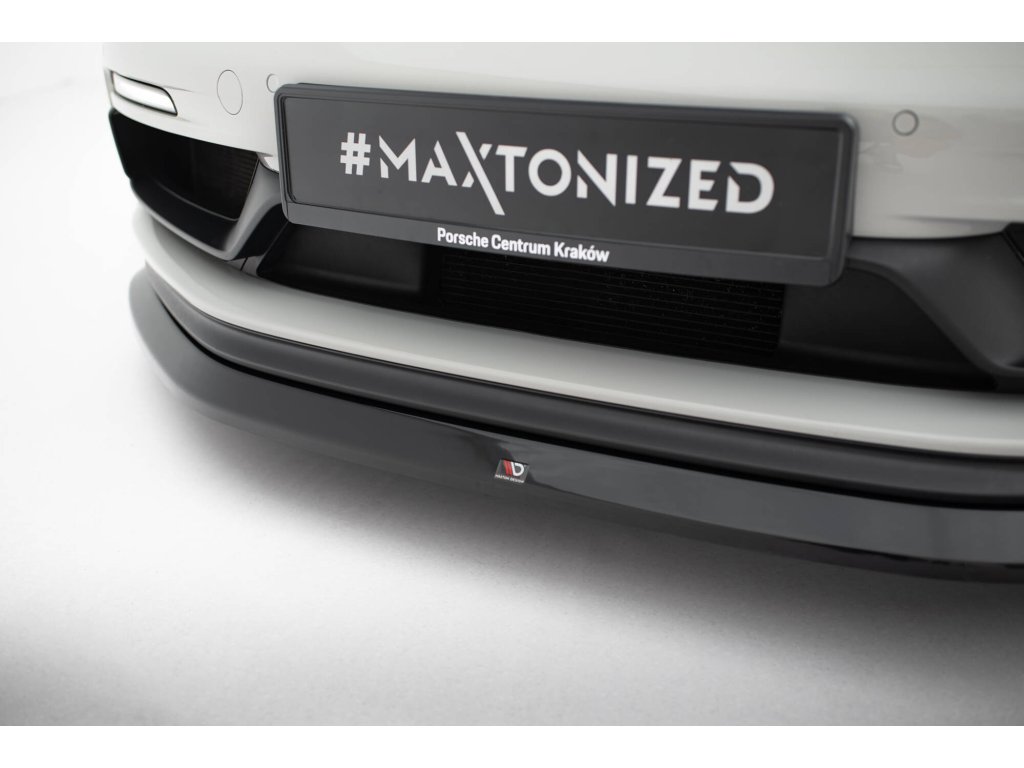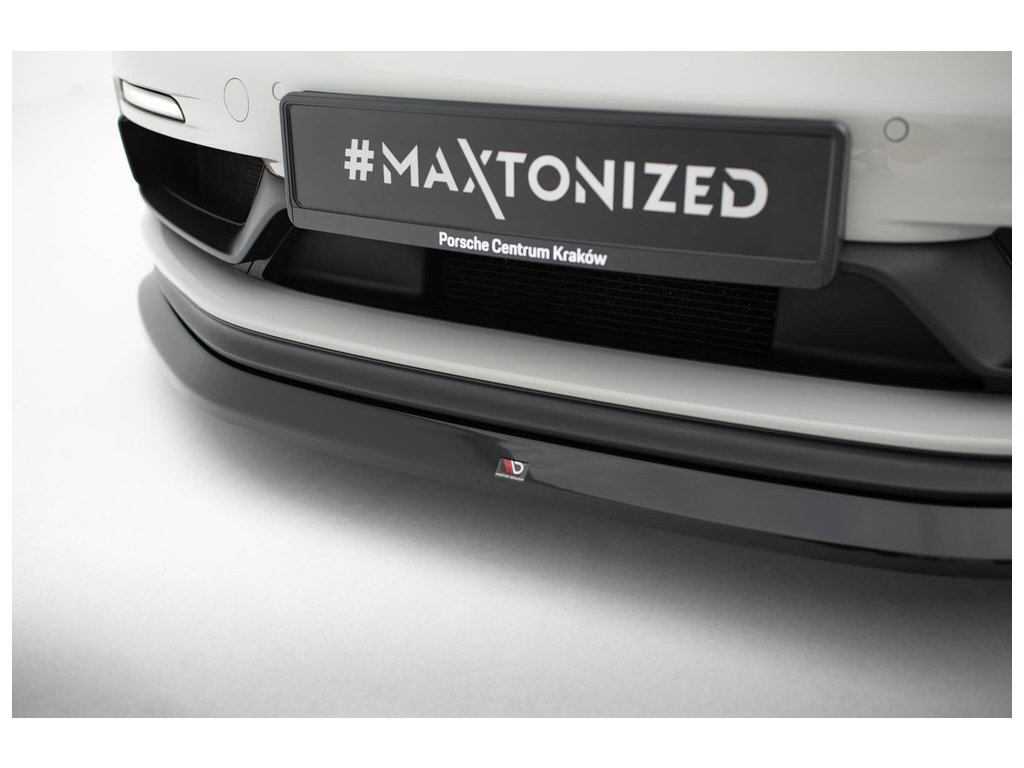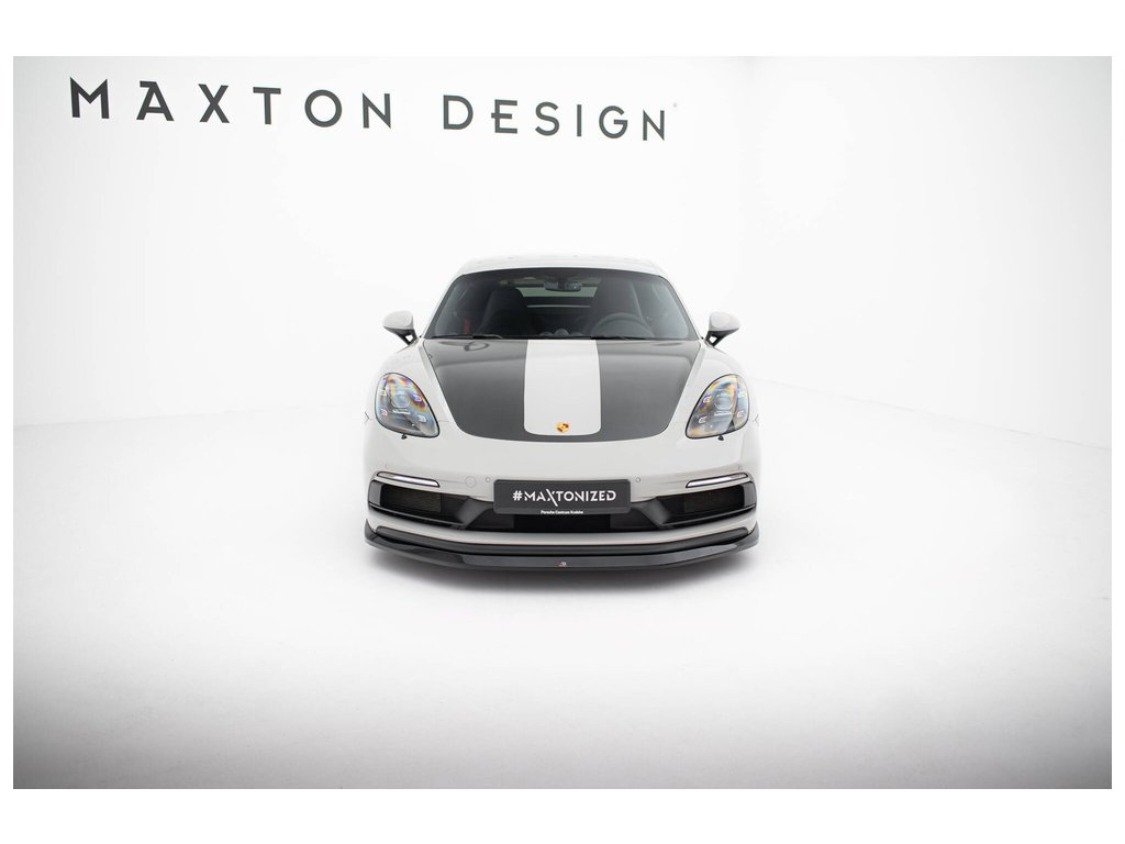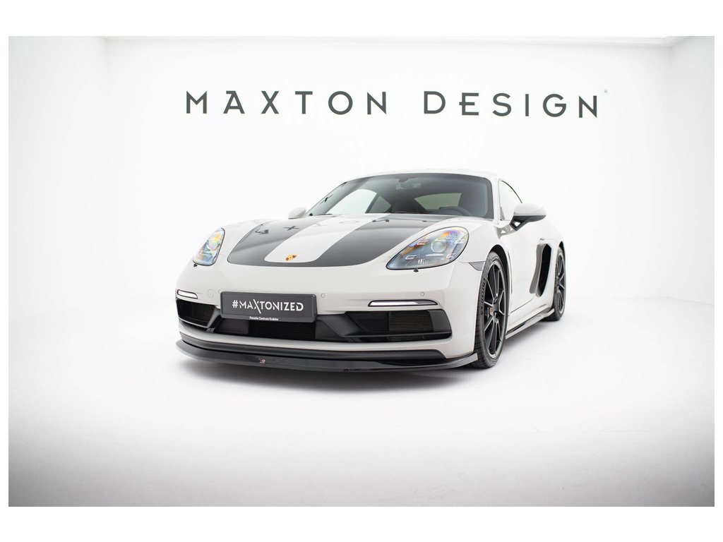 Maxton Design spoiler pod přední nárazník v.1 pro vozidlo Porsche Cayman 982c . Povrchová úprava spoileru černý lesklý plast ABS.