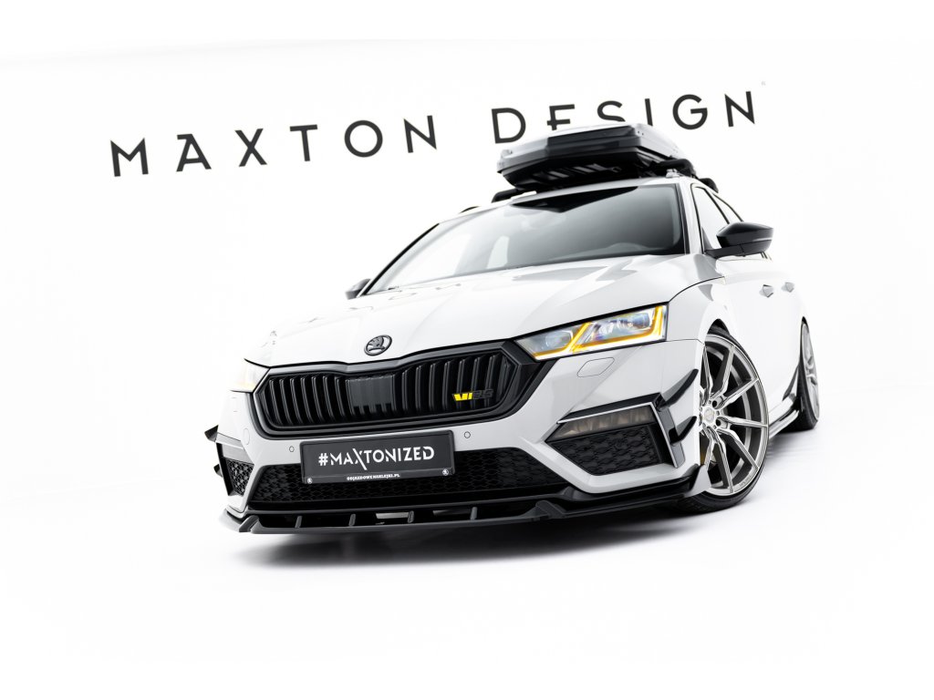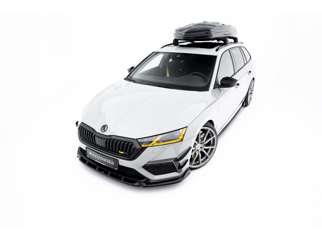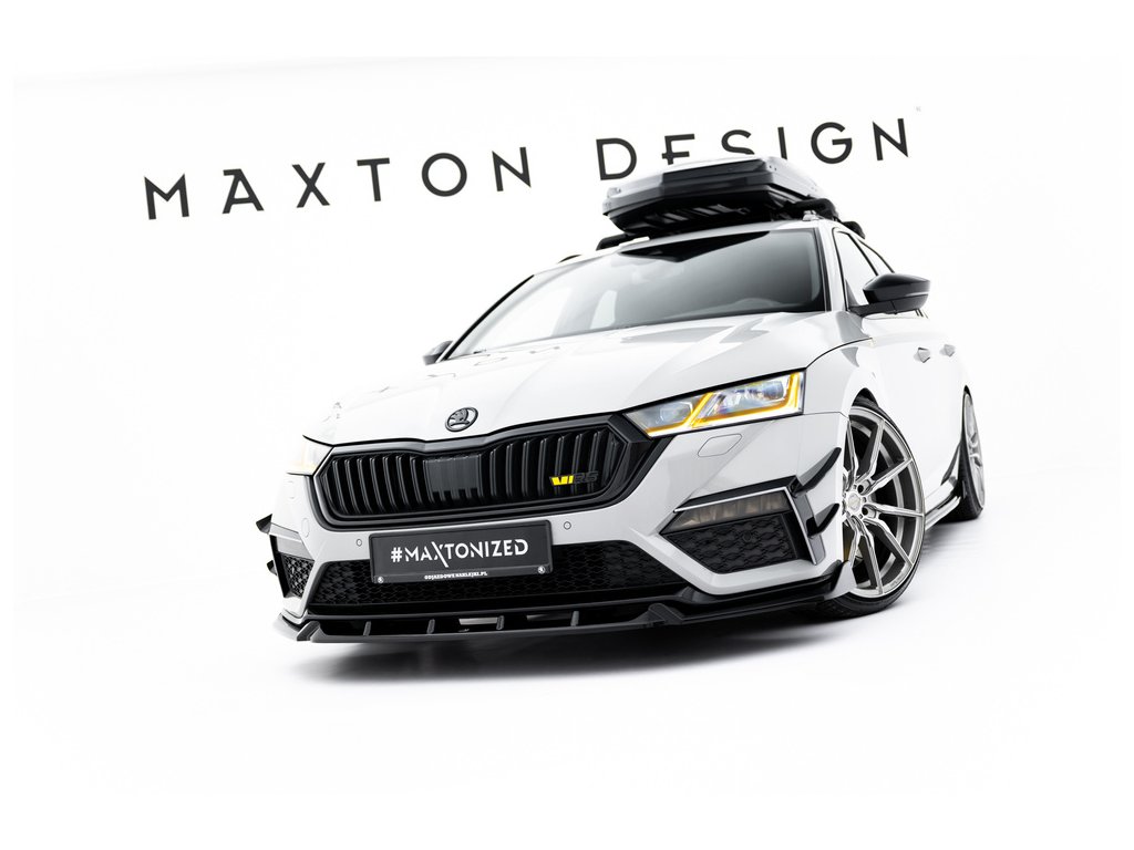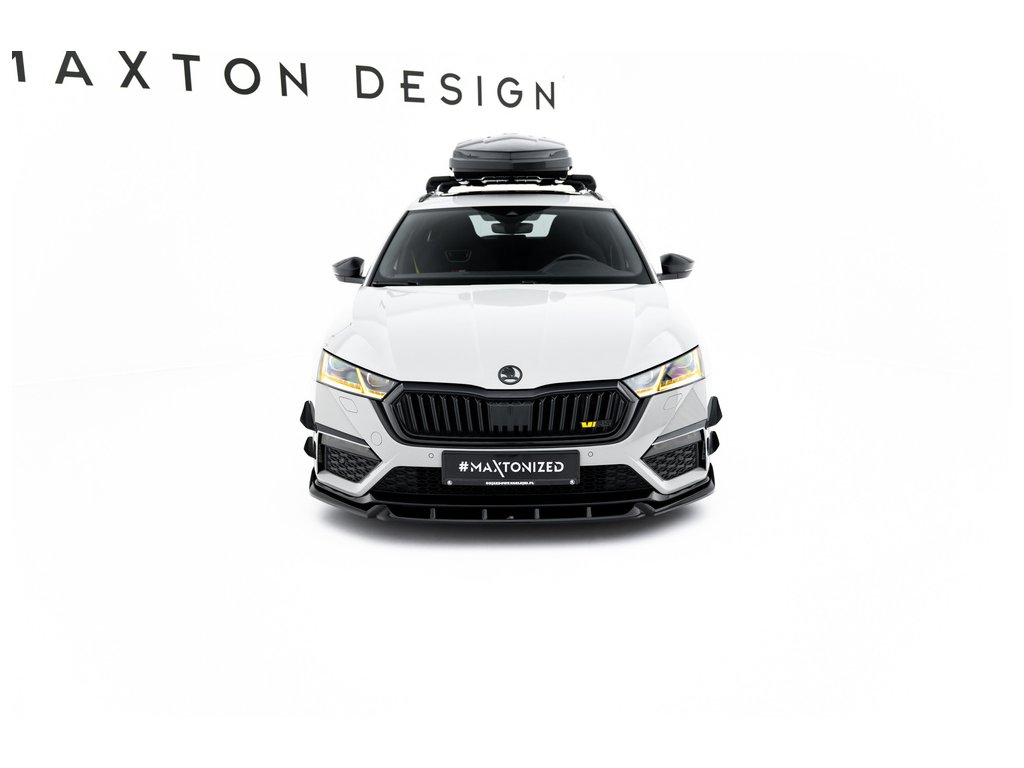 Maxton Design spoiler pod přední nárazník v.5 pro vozidlo Škoda Octavia RS Mk4 . Povrchová úprava spoileru černý lesklý plast ABS.