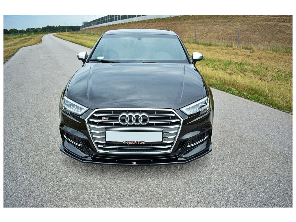 Maxton Design spoiler pod přední nárazník ver.1 pro vozidlo Audi A3, S3 8V FL . Povrchová úprava spoileru černý lesklý plast ABS.