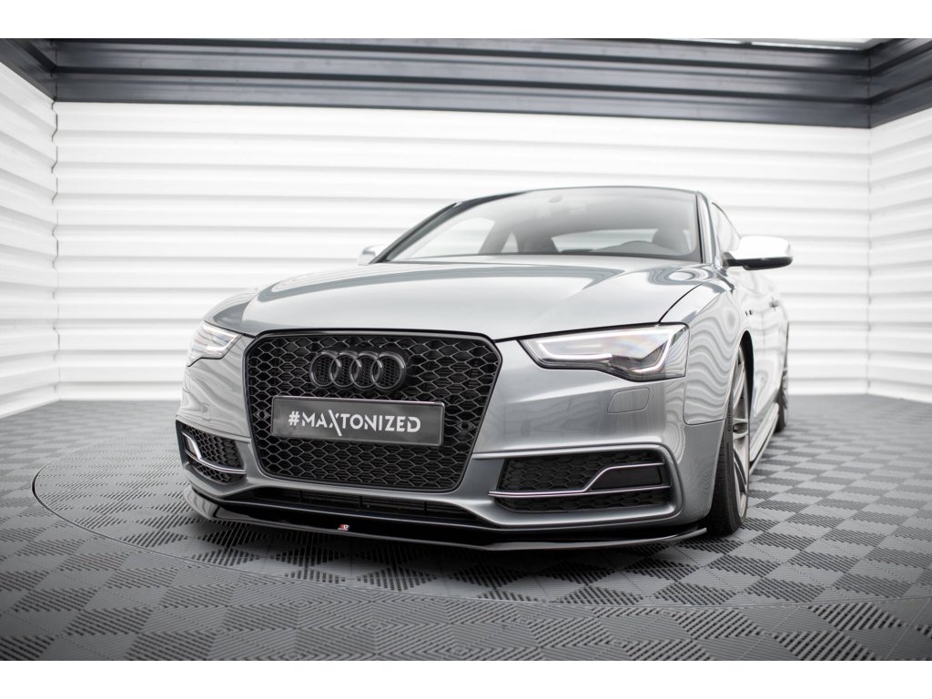 Přední spoiler V.1 Audi S5 / A5 S-Line 8T FL, povrchová úprava černý lesklý plast ABS.