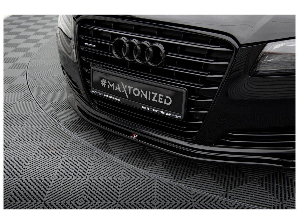 Maxton Design spoiler pod přední nárazník ver.1 pro vozidlo Audi A8 D4 . Povrchová úprava spoileru černý lesklý plast ABS.