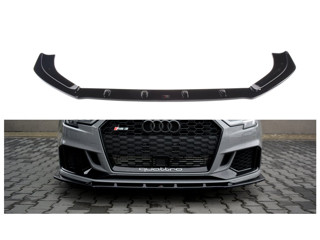 Maxton Design spoiler pod přední nárazník ver.1 pro vozidlo Audi RS3 8V Facelift . Povrchová úprava spoileru carbon-Look.